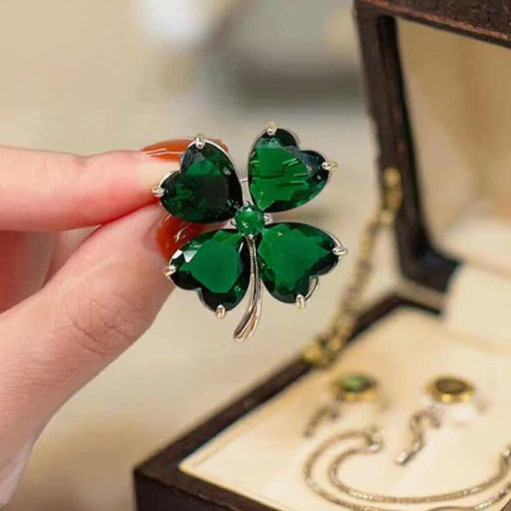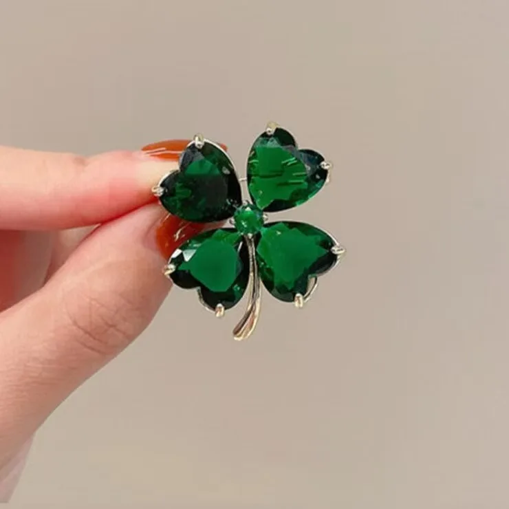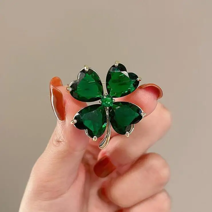 Designer Brand Four-leaf Clover Brooch with Crystal Flowers, Suitable for Wedding Parties and Suit Accessories.