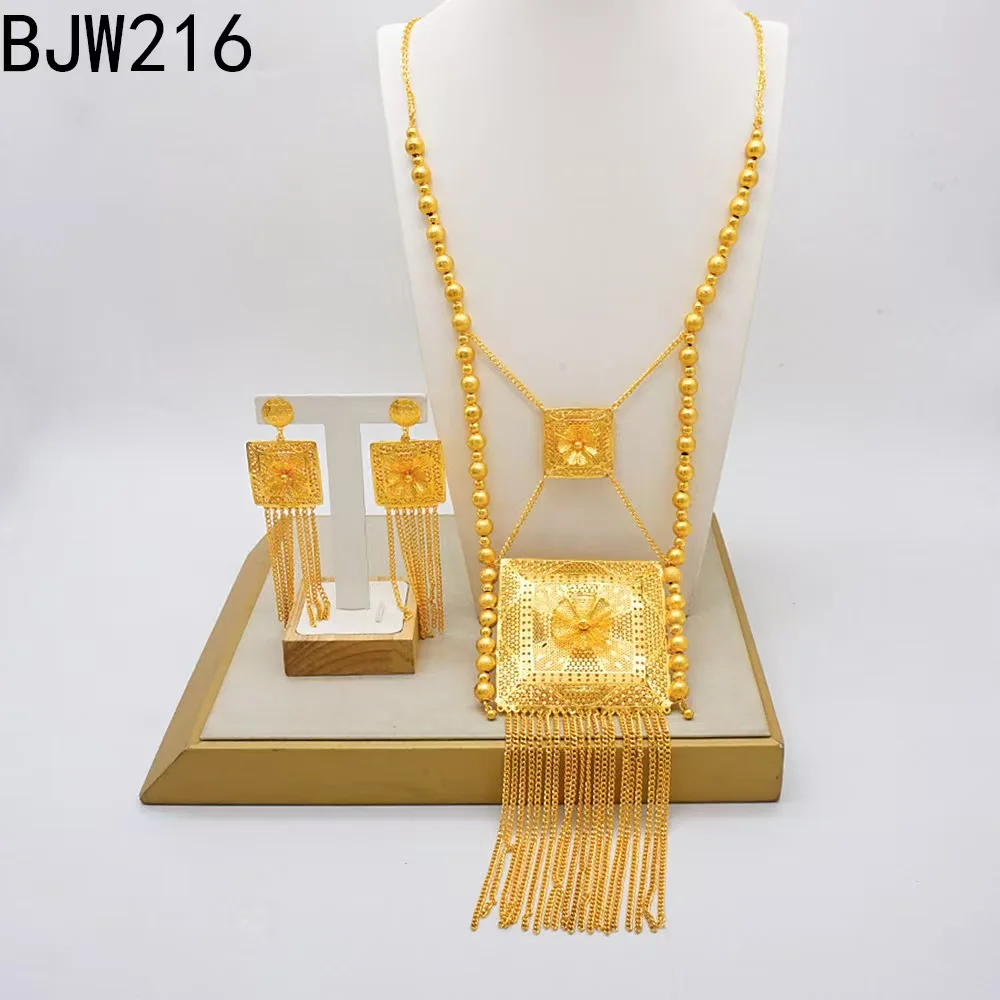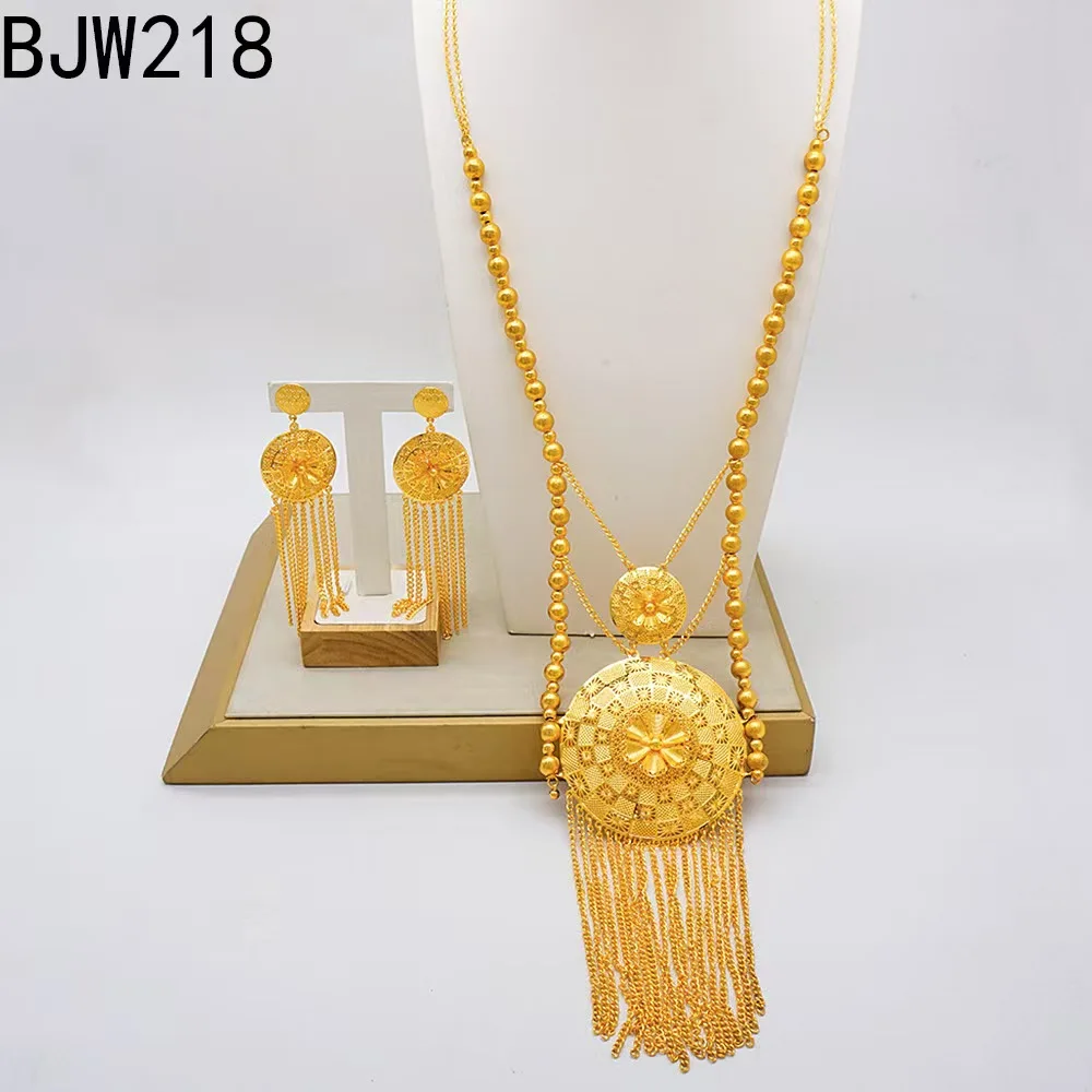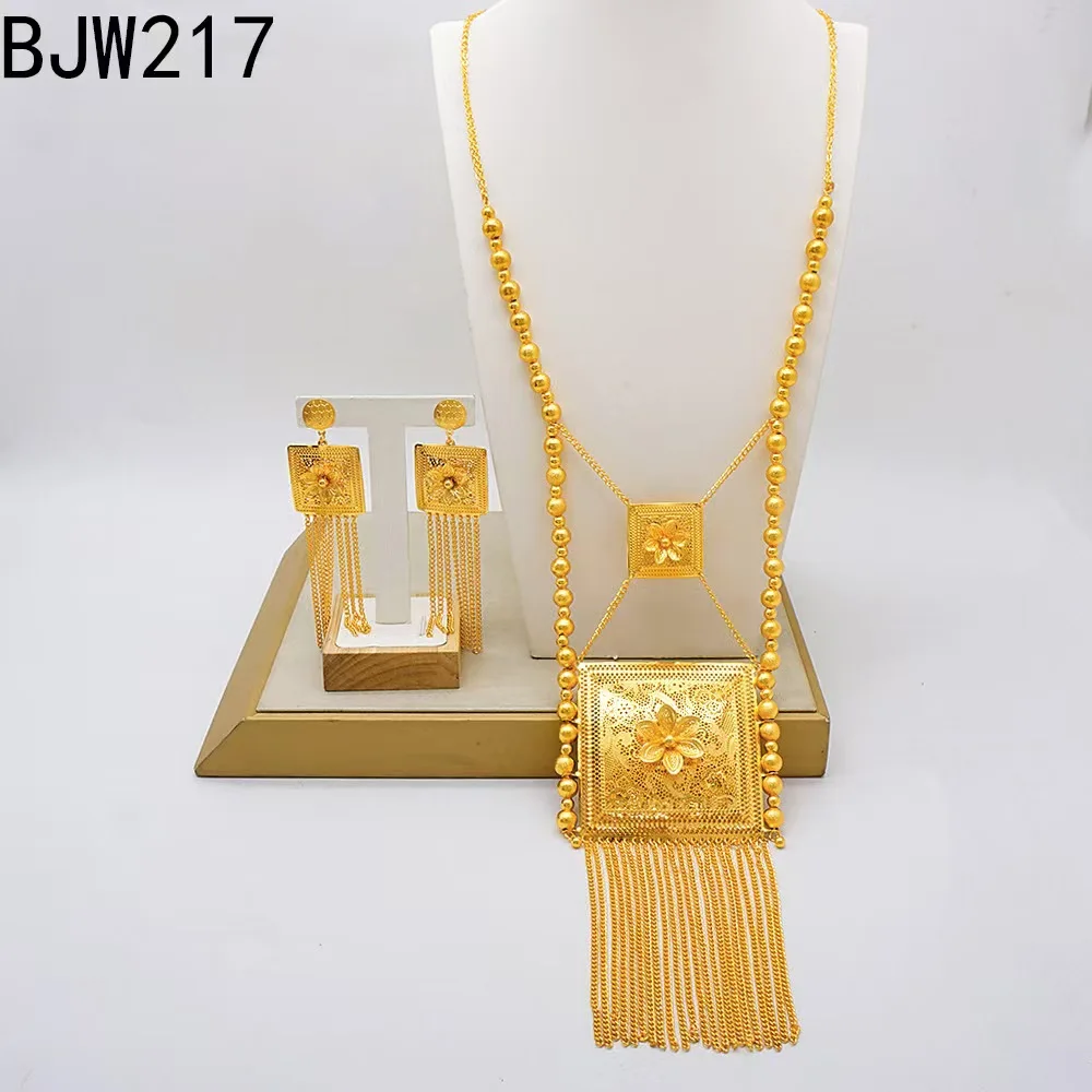 Exquisite Copper Gold Plated Dubai Bridal Jewelry Set for Weddings Festivals Includes Necklace Bracelet Ring Muslim Theme Gift
