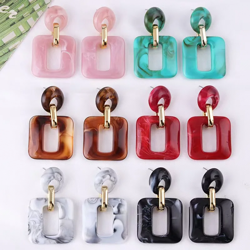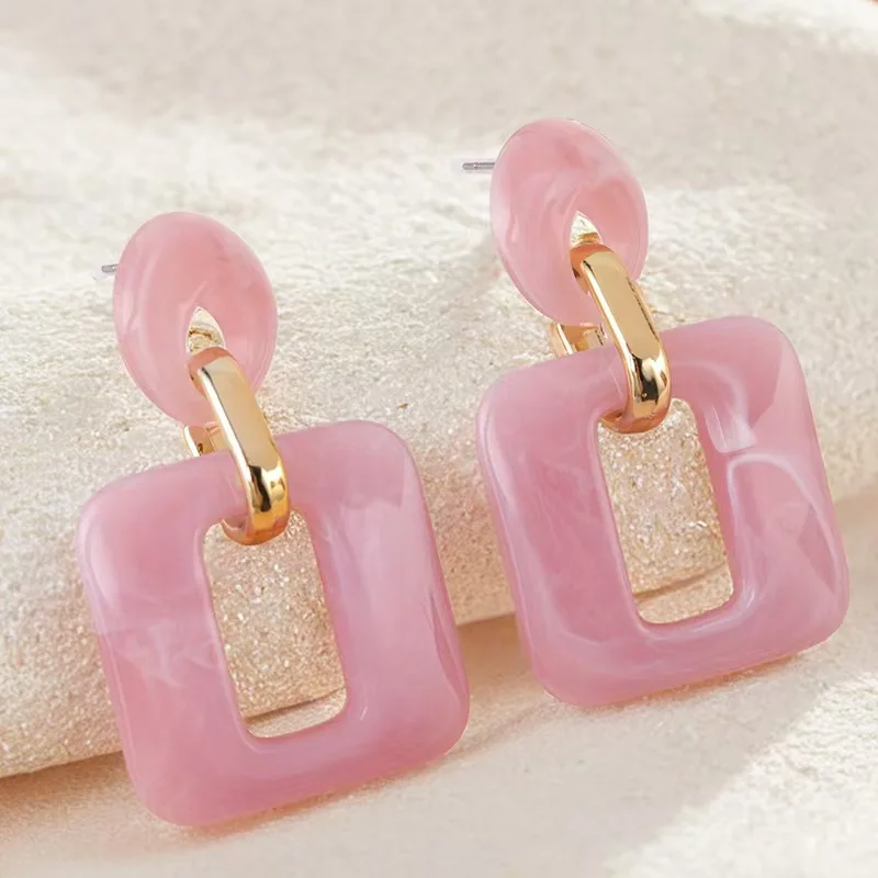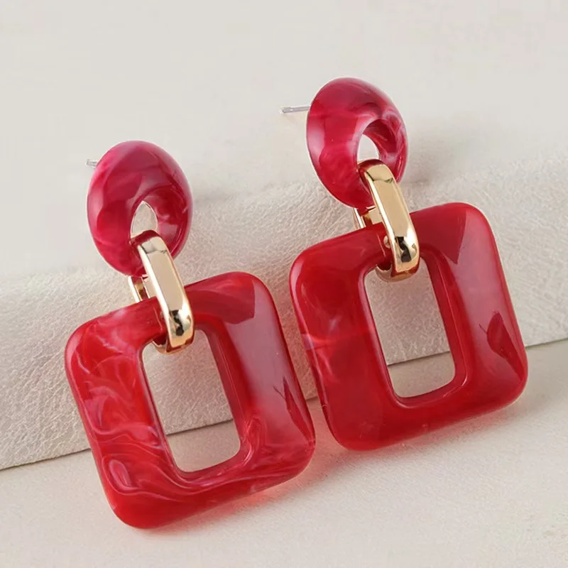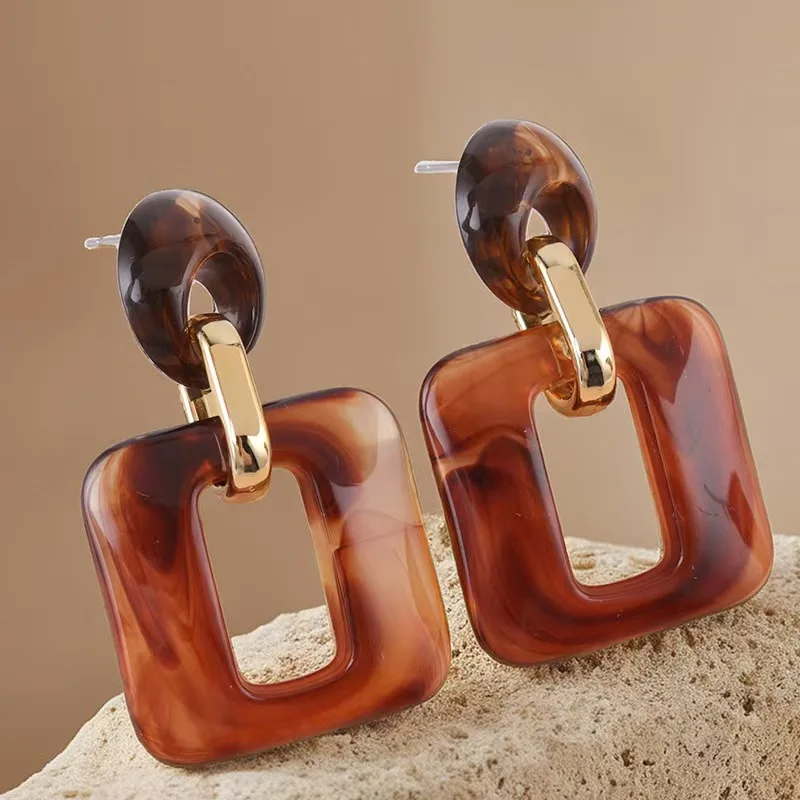European American Autumn Winter Series Textured Geometric Square Acrylic Fashion Drop Earrings for Women Retro Style Wholesale