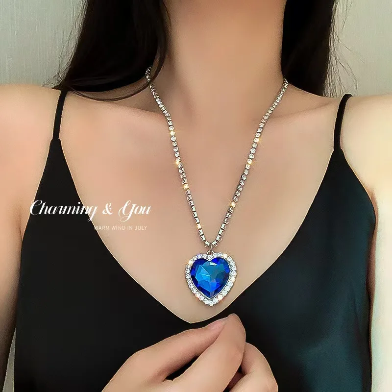 Elegant Rhinestone Crystal Heart Pendant Necklace Link Chain Party Jewelry Bridal Engagement Wedding Gift Accessory Zinc Alloy