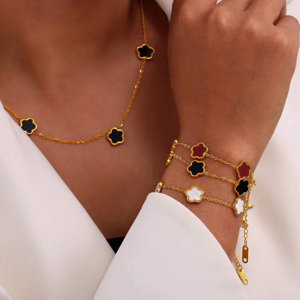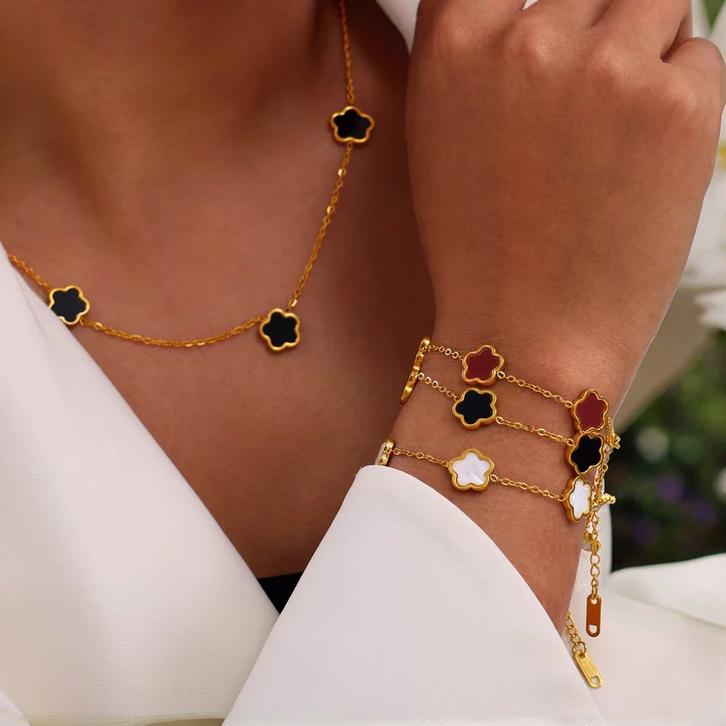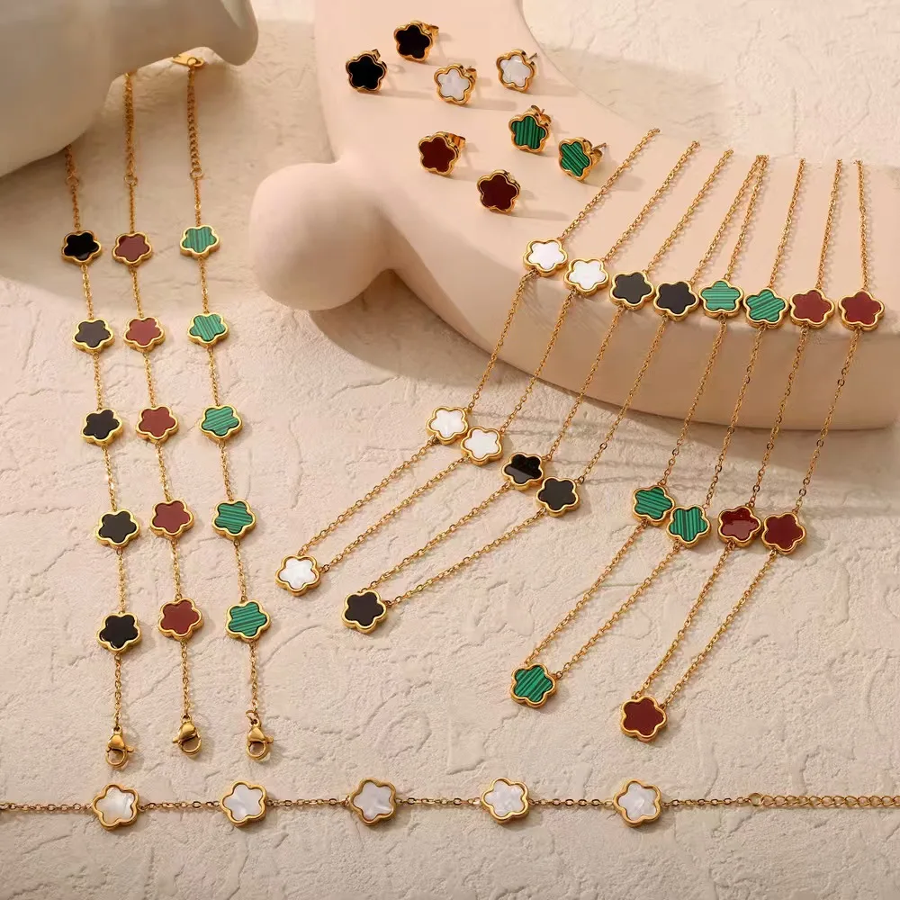 Designer Brand Five-leaf Clover Flower Set, Shell Acrylic Titanium Steel Necklace, Bracelet, and Earring Set