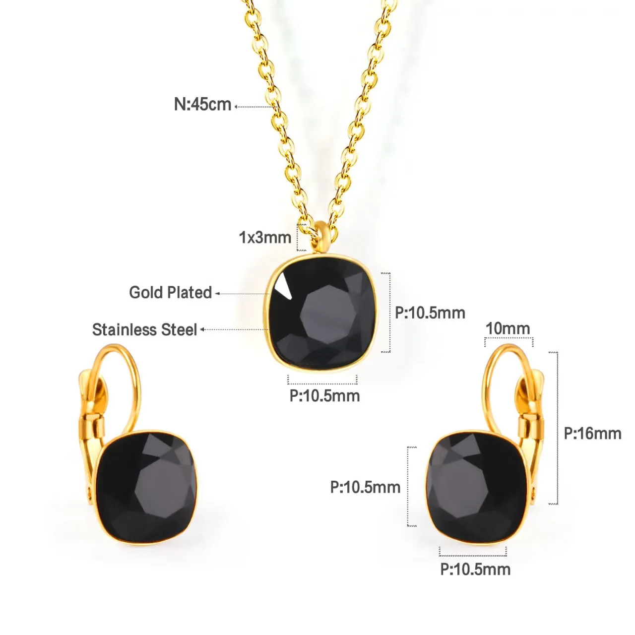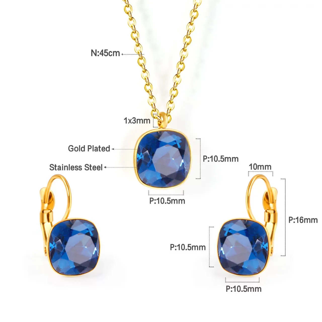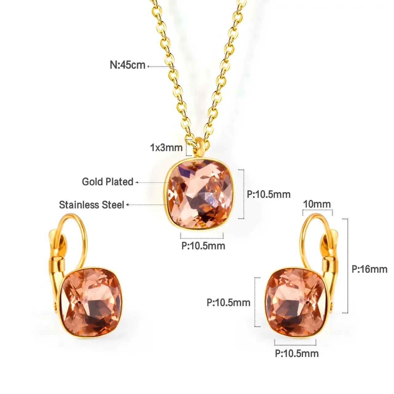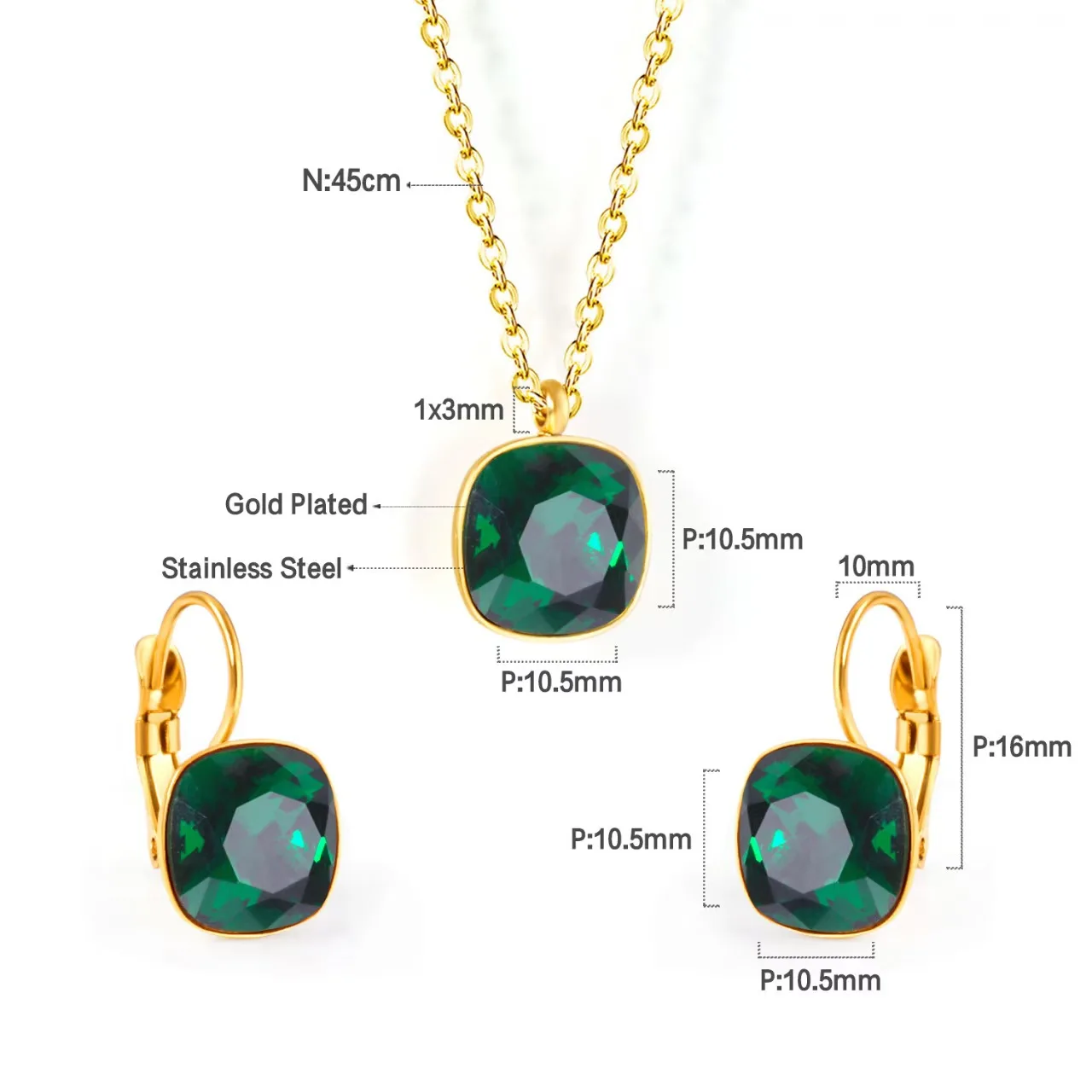 Colorful Zircon Link Chain Necklace and Earring Set Gold Plated Stainless Steel Jewelry Set Wholesale