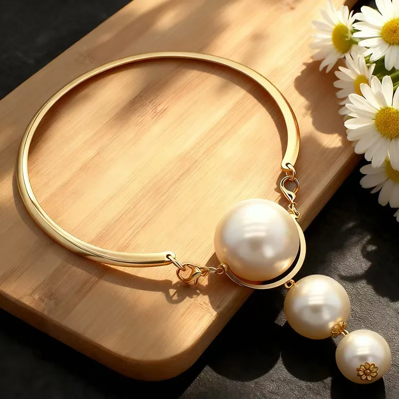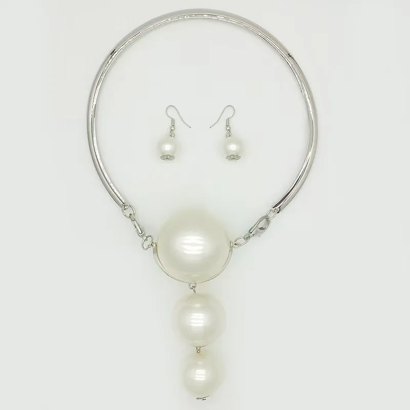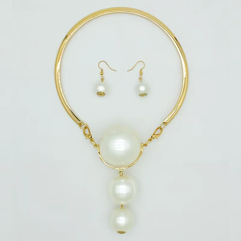 Women's Classic Style Copper Alloy Pearls Choker Necklace Earrings Jewelry Set for Wedding Engagement Gift Catholic