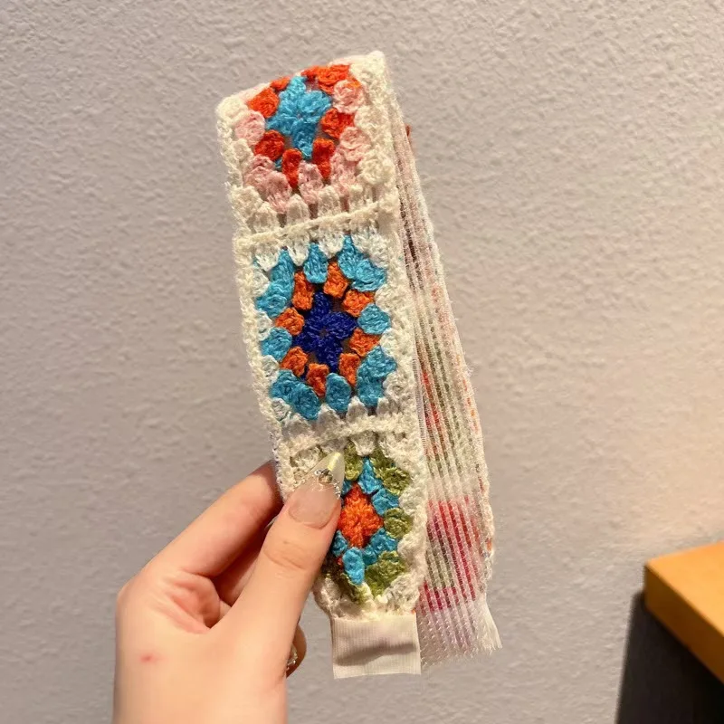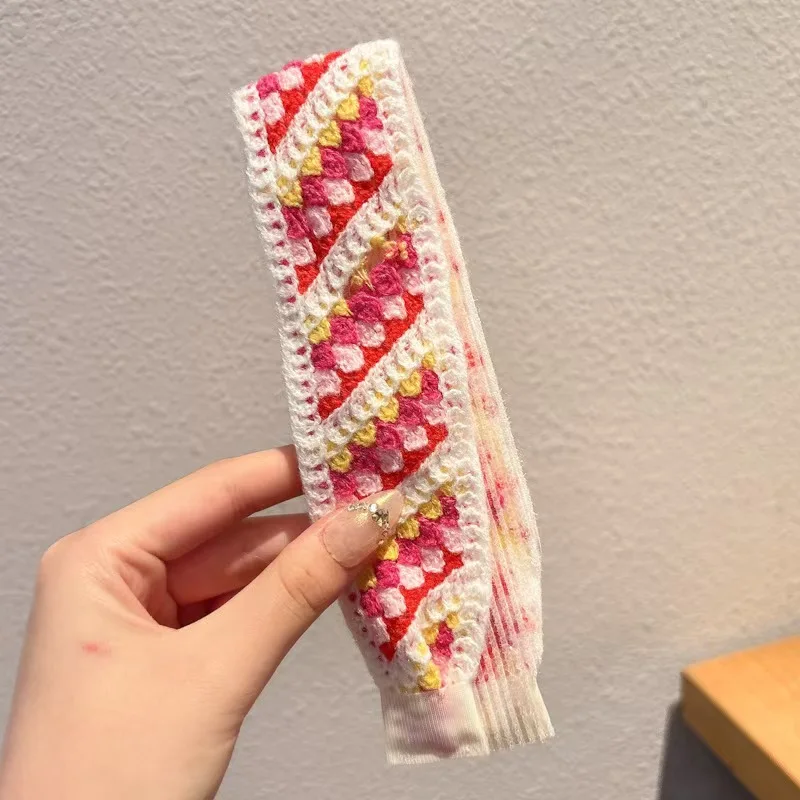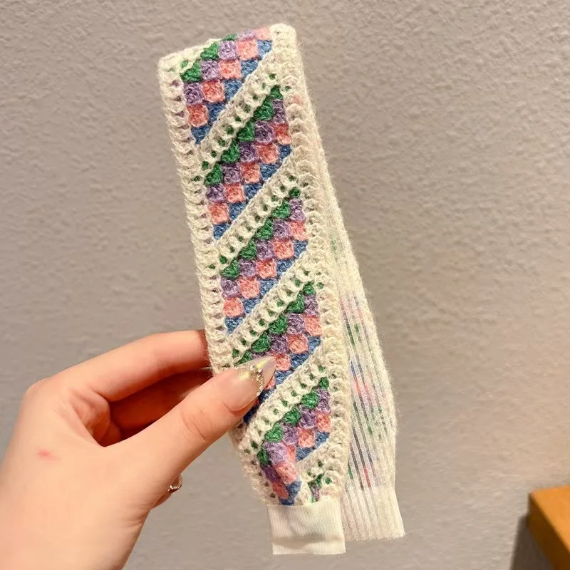 French Retro Fashion Knitted Headband with Flowers 38cm Size for Children and Women's Daily Use Sweet Bangs