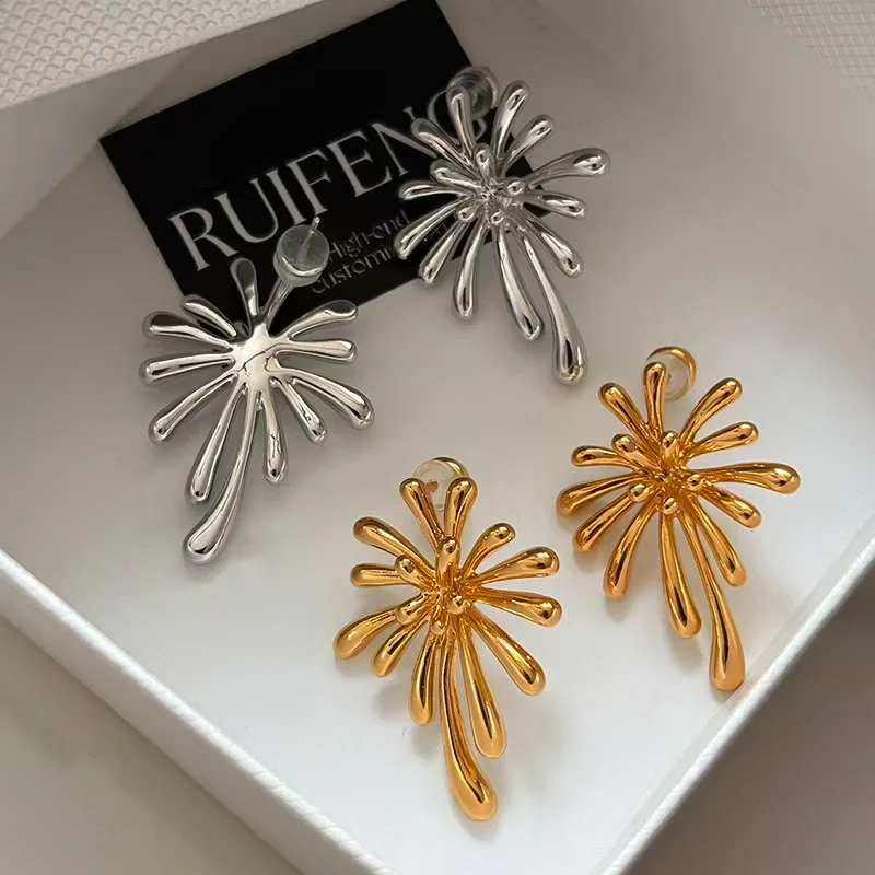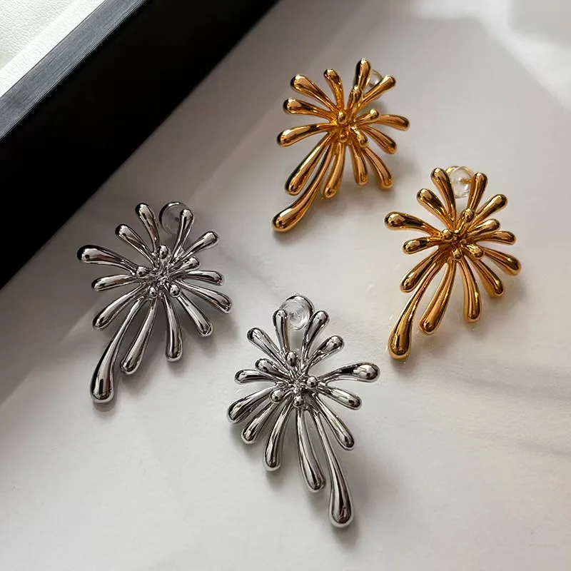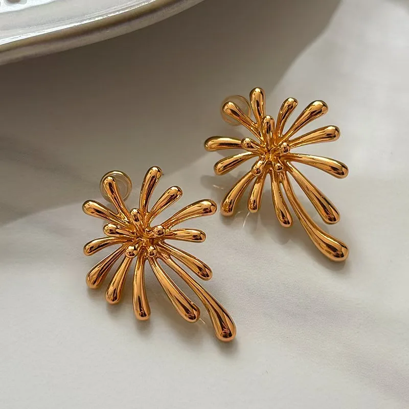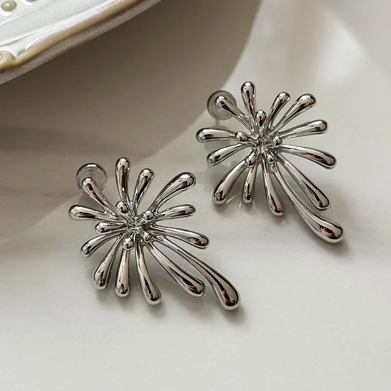 New High-quality Trendy Firework-shaped Vintage Rhodium Plated Stud Earrings for Women Perfect As a New Year's Gift