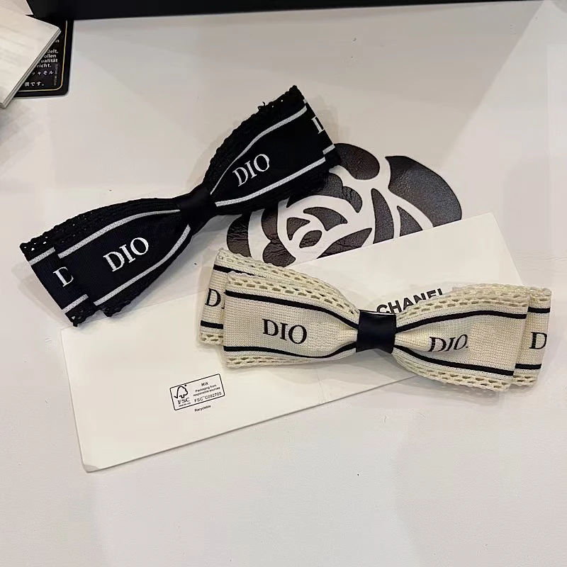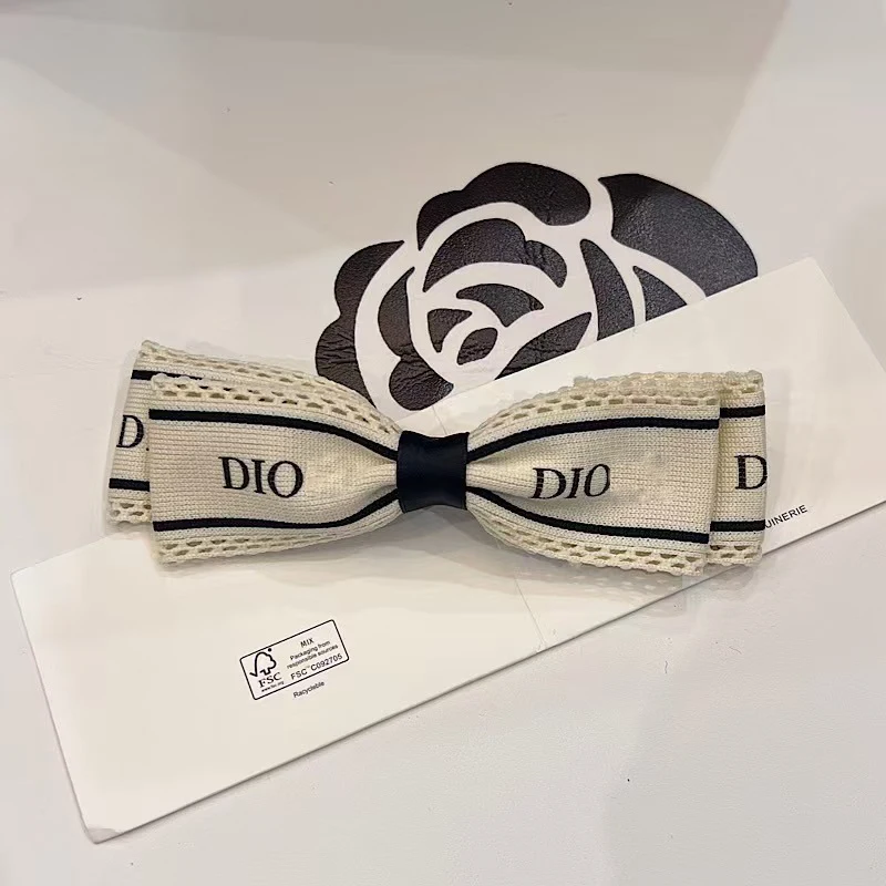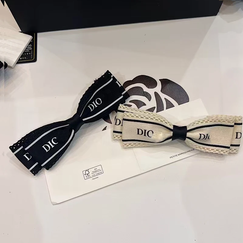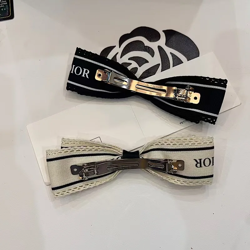 Designer Brand New Luxury Ribbon Letter-print Versatile Flowers Holiday Hair Clip Back Head Broken Spring Clip Hair Accessory