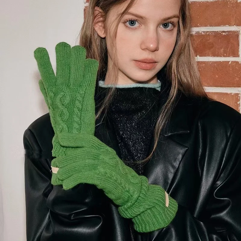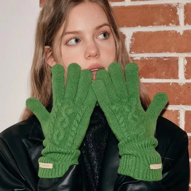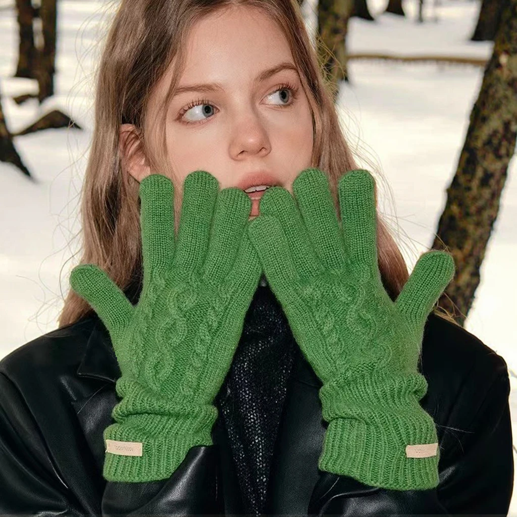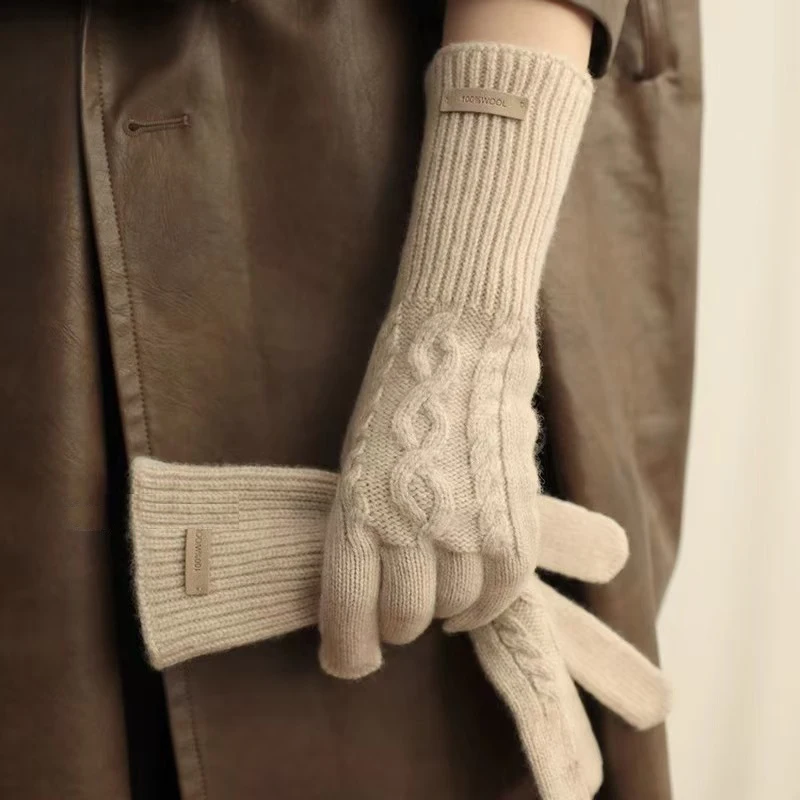 Autumn and Winter Warm Unisex High-end Thickened 100% Wool Elastic Striped Twist Wrist-length Needle Detection Outdoor Gloves