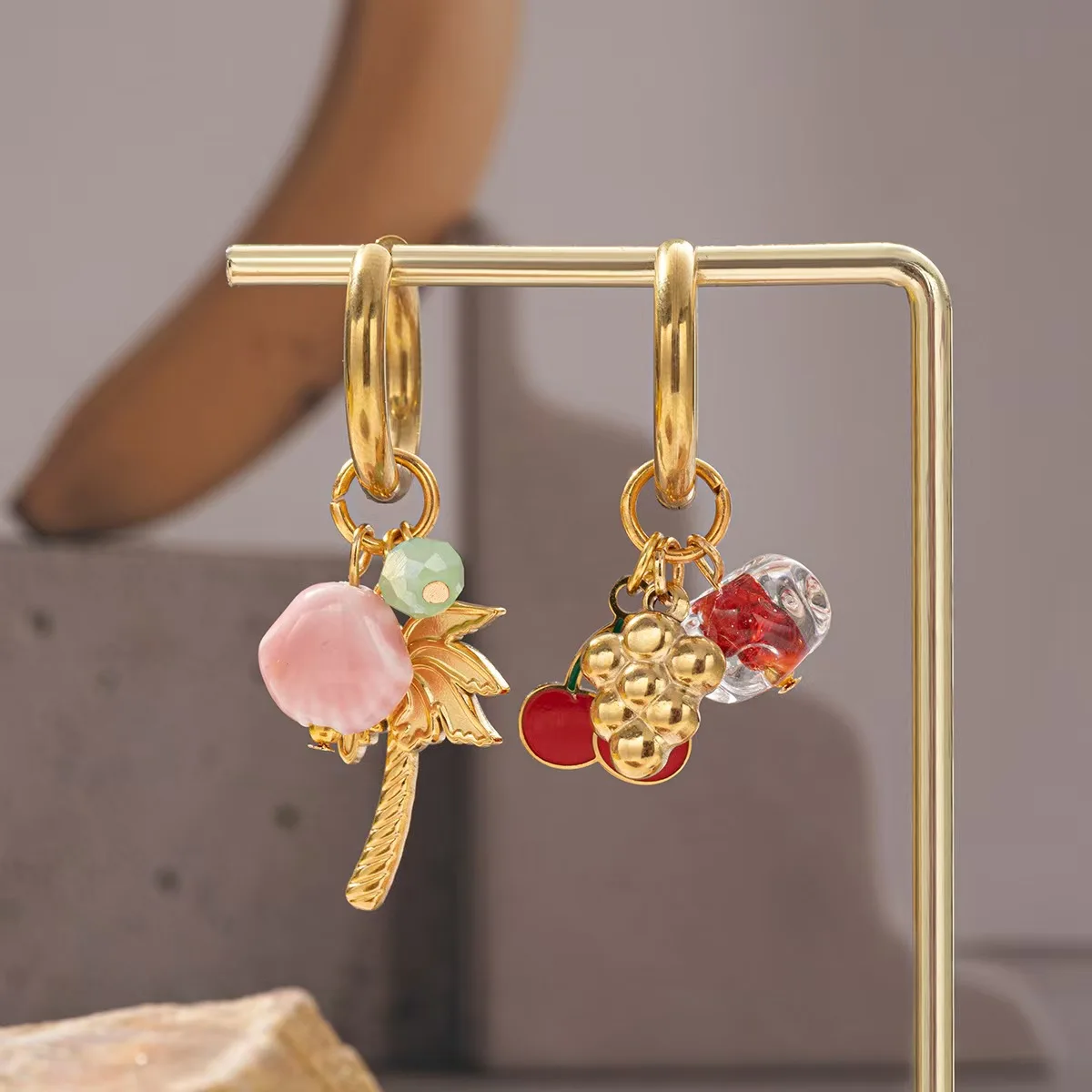 High-end Brand Pastoral Style Trendy Women's Drop Earrings Lightweight Luxurious Fruit Design Single Stainless Steel Earring