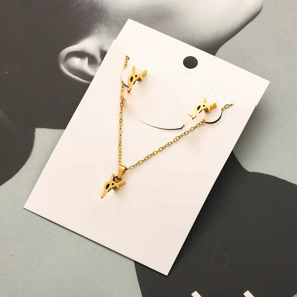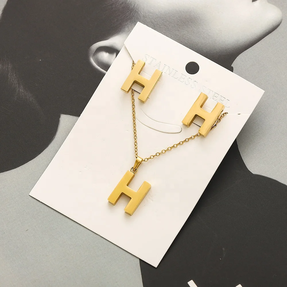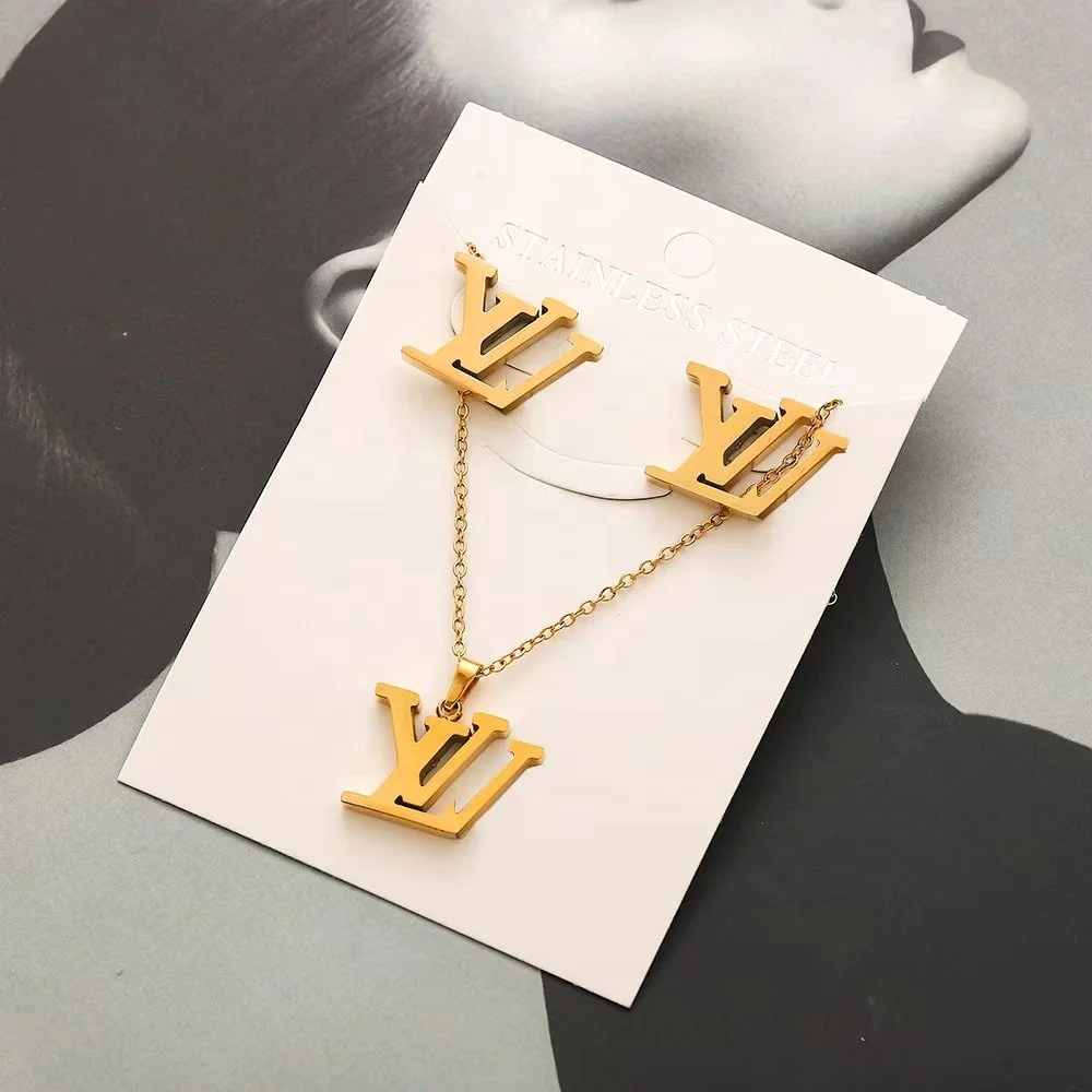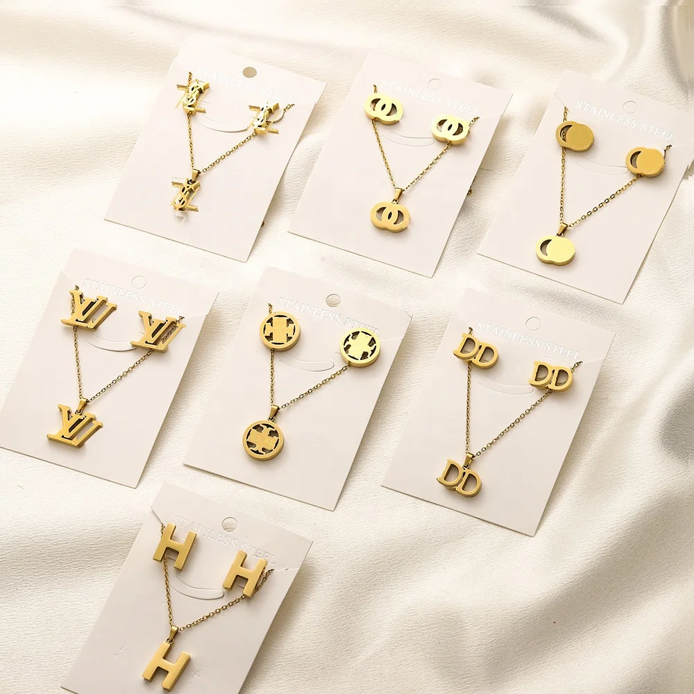 Factory Wholesale Women's Designer Brand Stainless Steel Jewelry Set 18k Gold Necklace Earrings Party Waterproof PVD