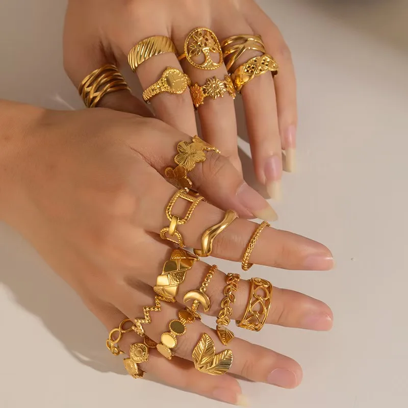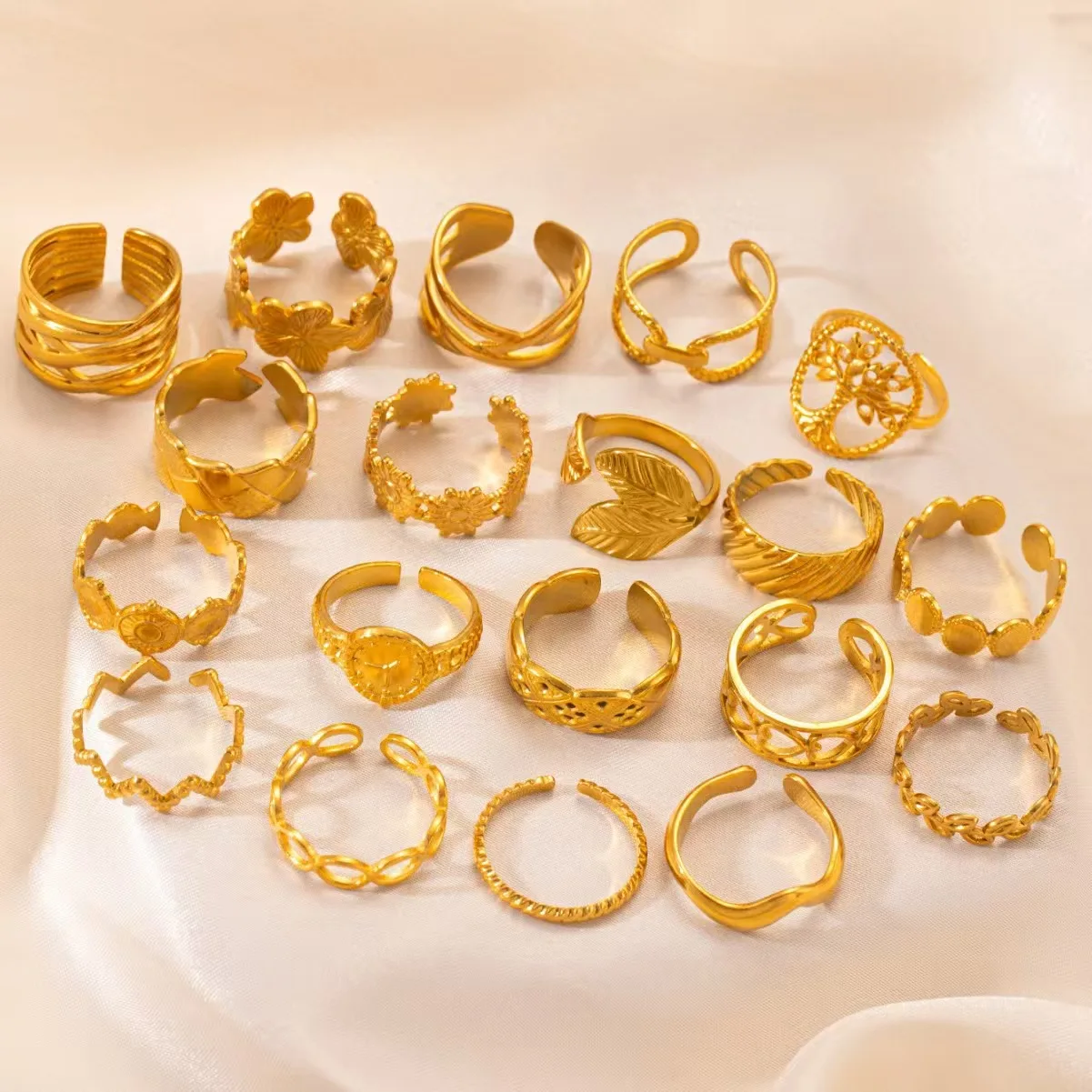 Fashion Stainless Steel 18K Gold Plated Adjustable Waterproof Vintage Wedding Engagement Ring Unisex Factory Wholesale
