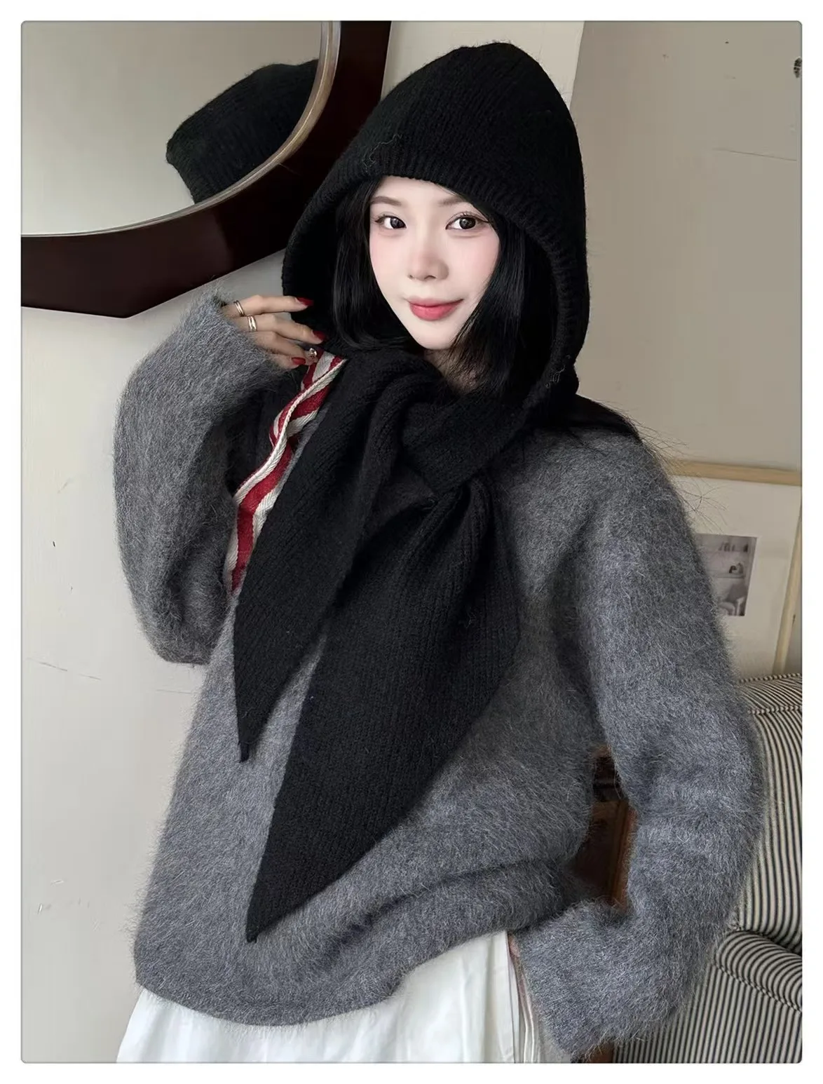 New Double C Wool Computer Knitted Female Winter Warm Ear Protection Pullover Hat Party Use All-match Headwear Cold-proof