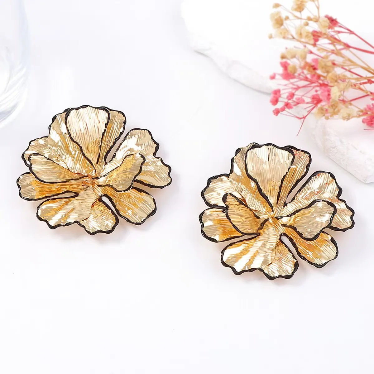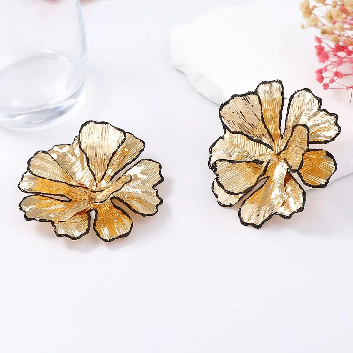Women's Fashion Metallic Gold Stud Earrings Big Ear Jewelry -Extracted Keywords Fashion Metallic Gold Women's Stud Earrings