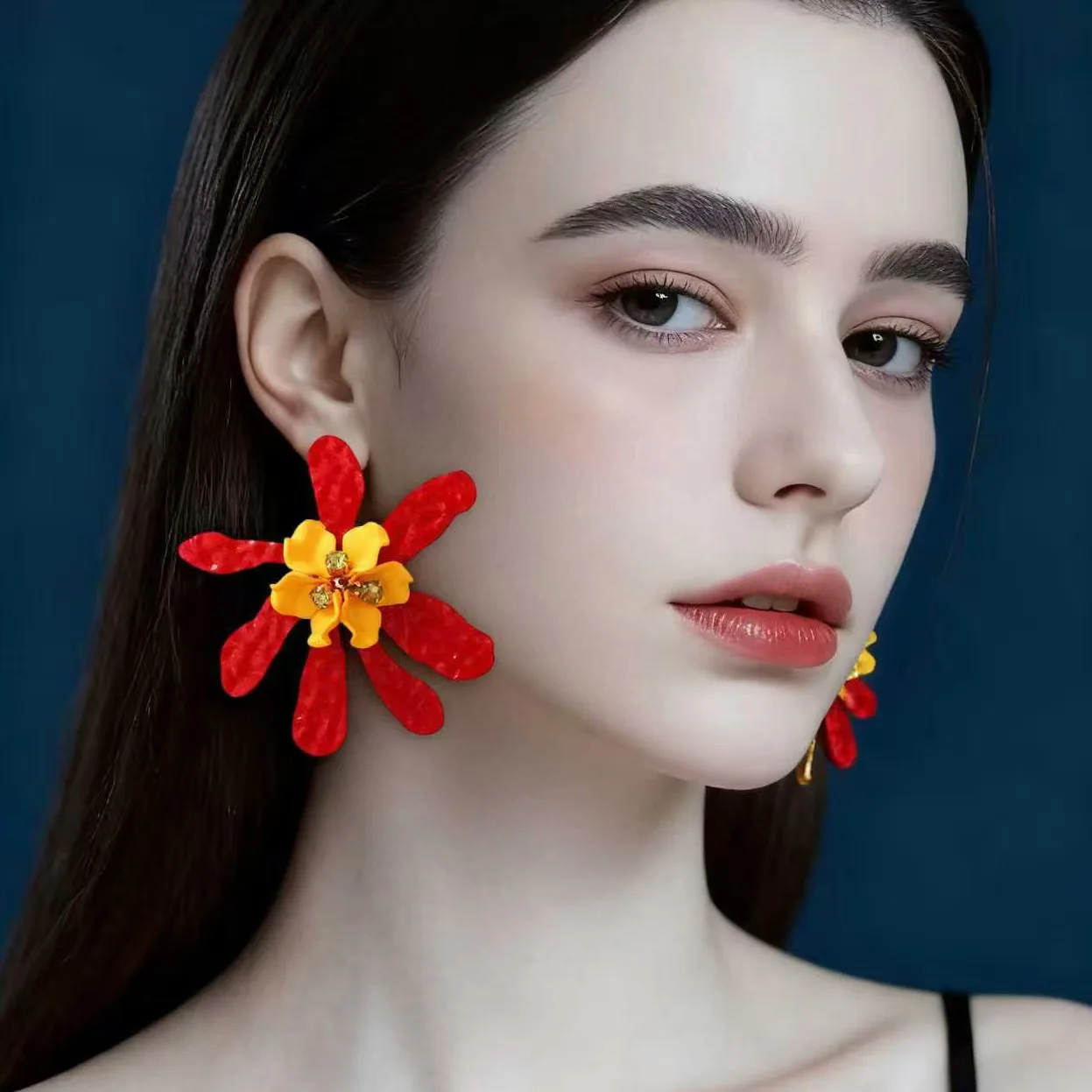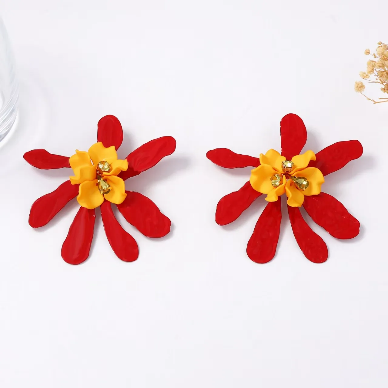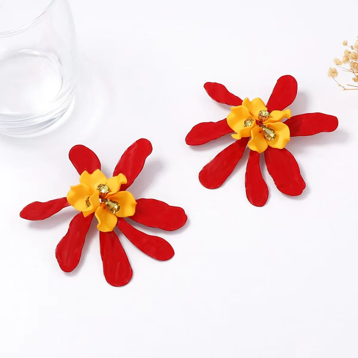 Vintage Trendy Women's Vacation Jewelry Exaggerated Acrylic Wave Flower Crystal Drop Earrings for Gifts Main Material Alloy