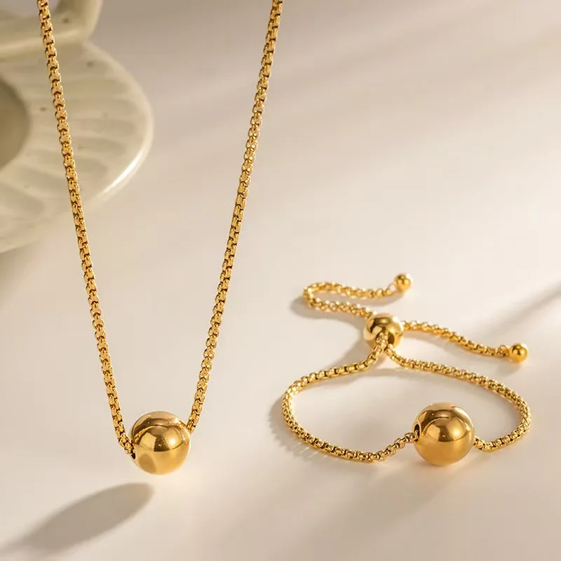 Wholesale Factory Stainless Steel Color Preserving Gold Plated Jewelry Set-Ball Pendant Bracelet Earrings Parties Engagements