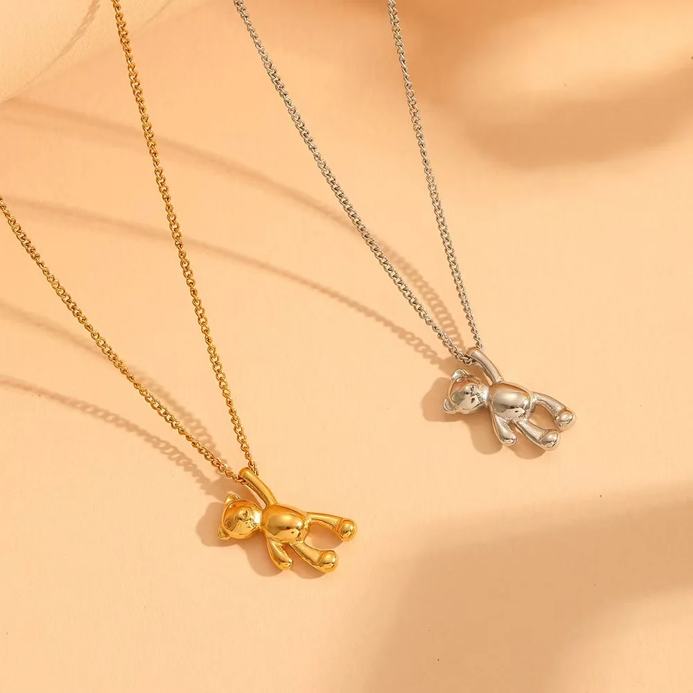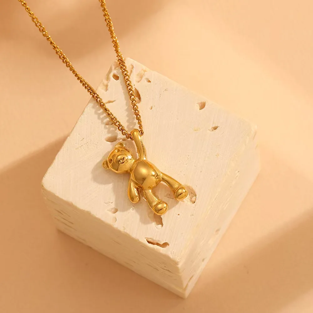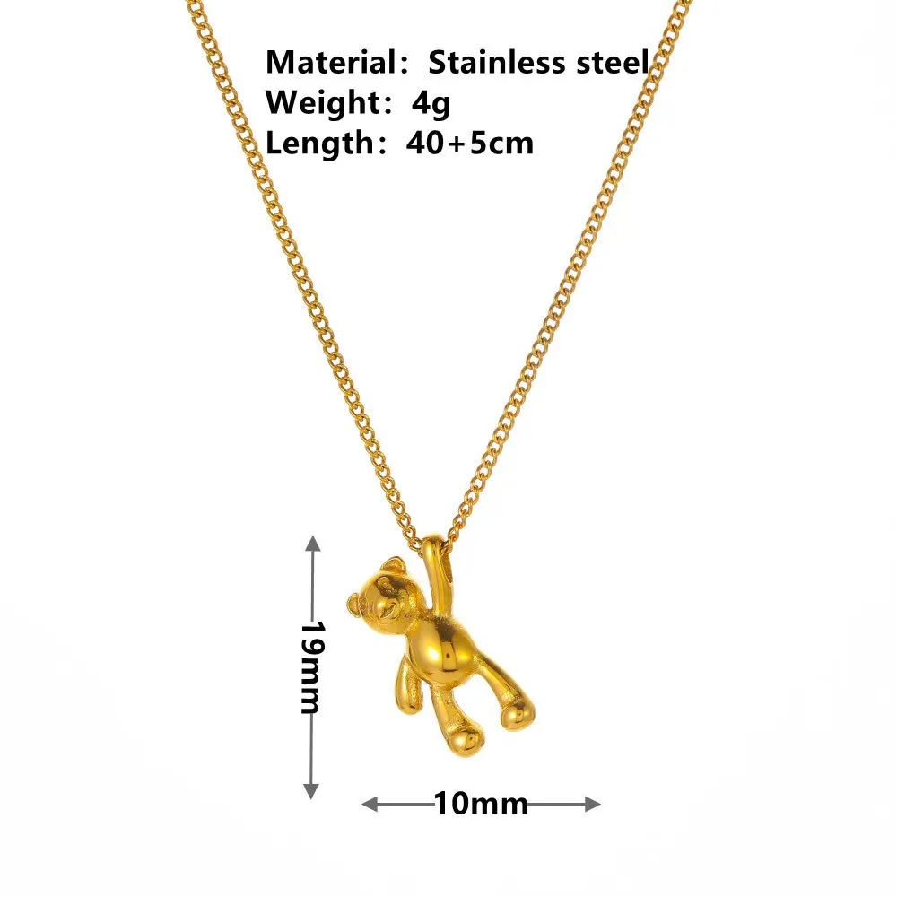 18K Gold Plated Stainless Steel Bear Pendant Necklace Crystal Rhinestone for Women Trendy Cute Design Link Chain for Anniversary