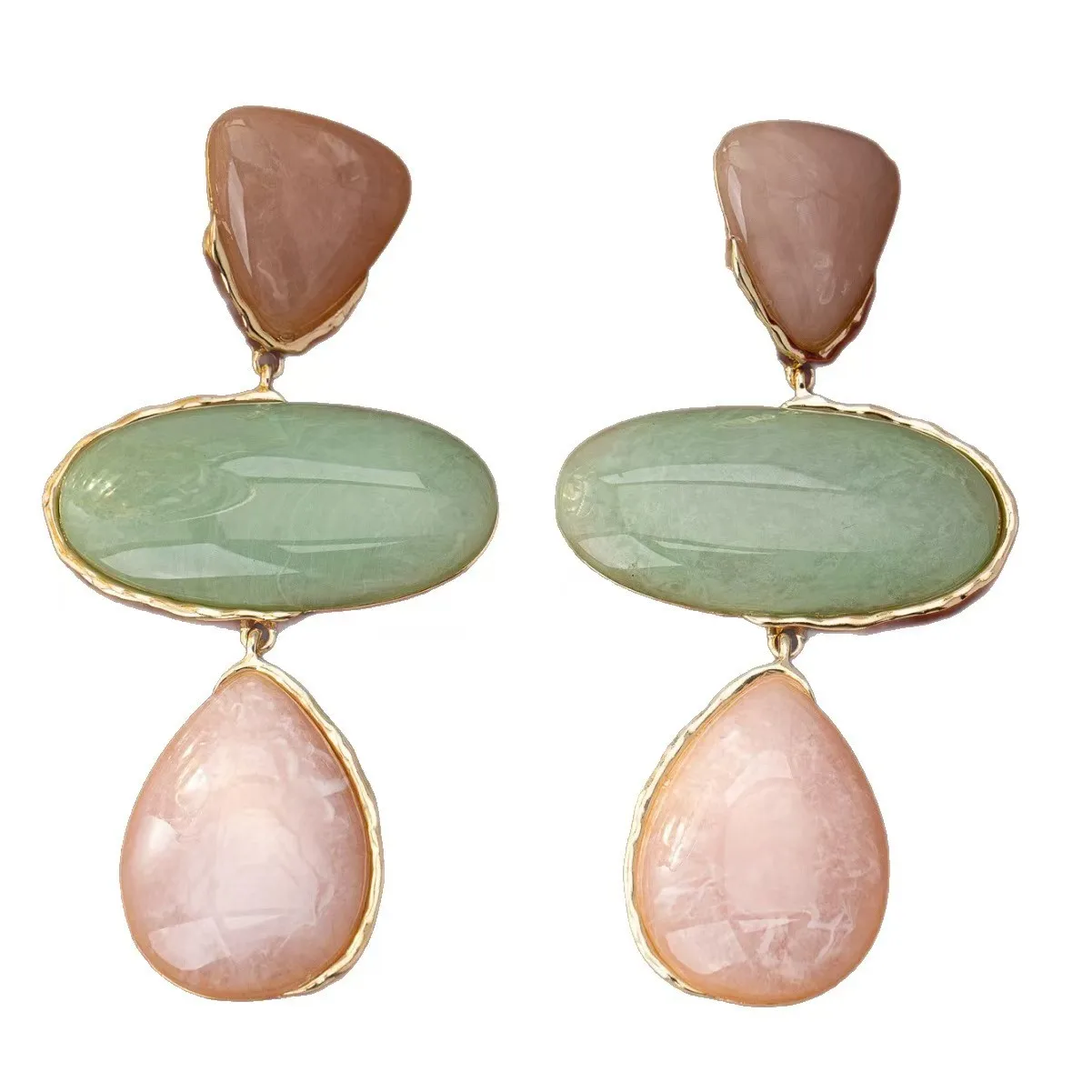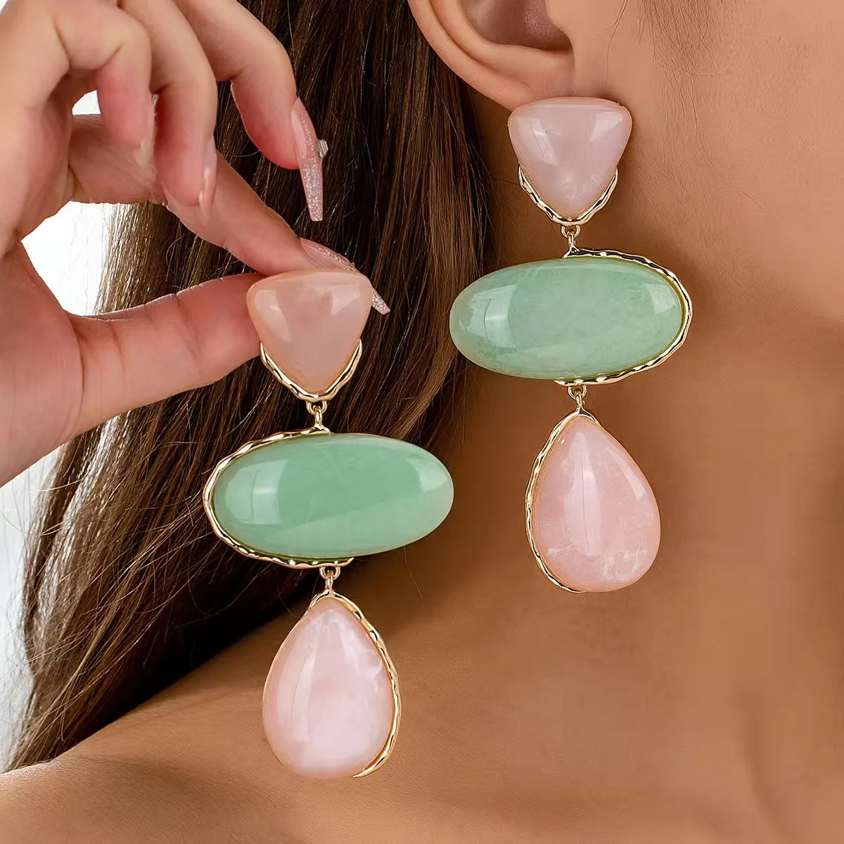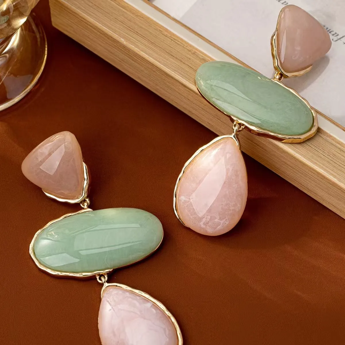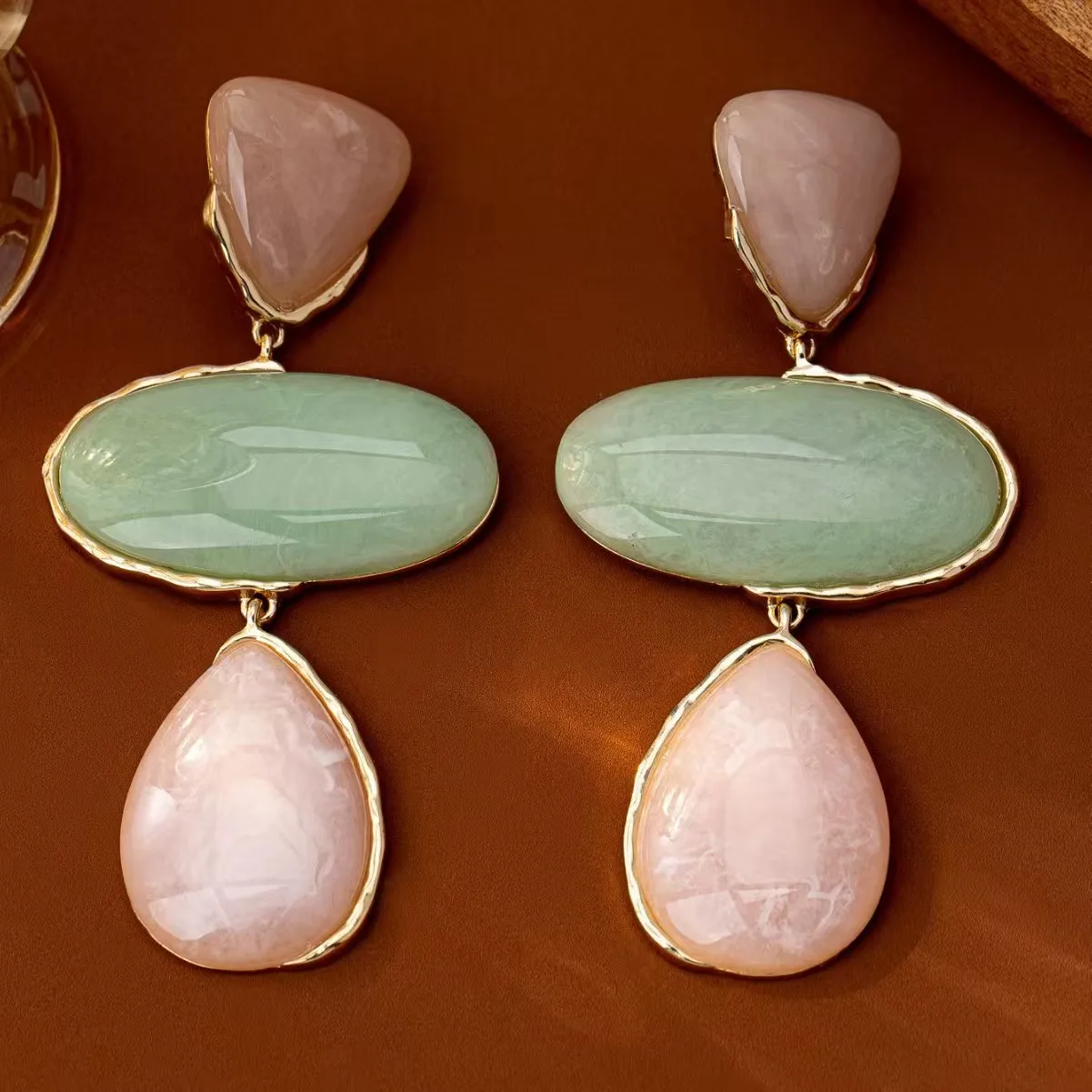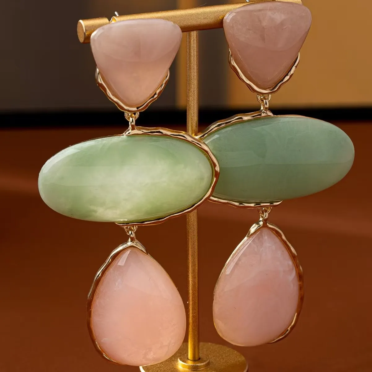 New Luxury High-end Design Earrings, Natural Stone Fashion Earrings, Unique Colored Zircon Versatile Statement Earrings.