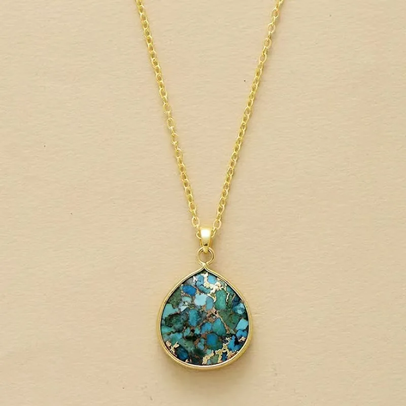 Classic and Simple New Style Pendant Necklace with Turquoise Natural Stone Beads and Chain European and American Accessories