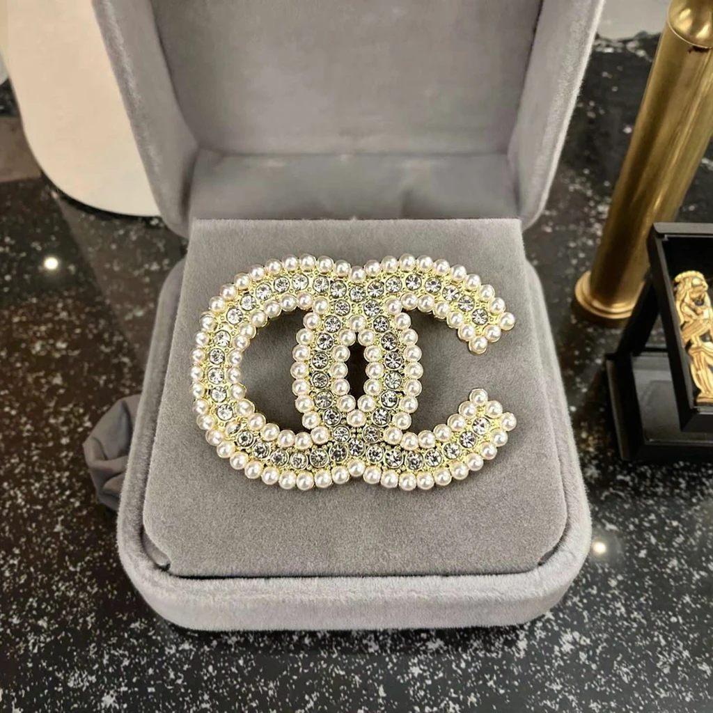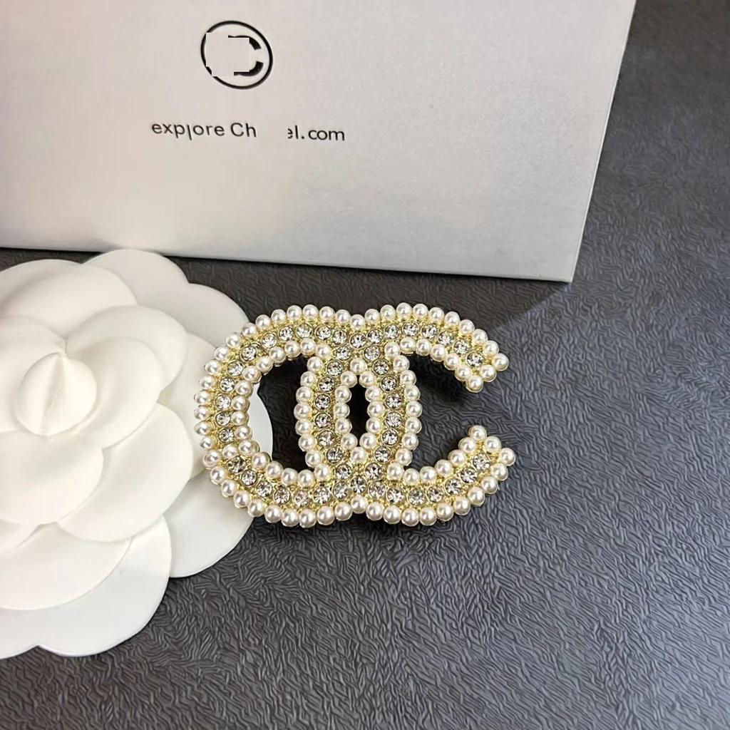 Designer Brand Letter Alloy Brooch New Style Light Luxury Men's Women's Shirt Suit Zircon Wedding Gift
