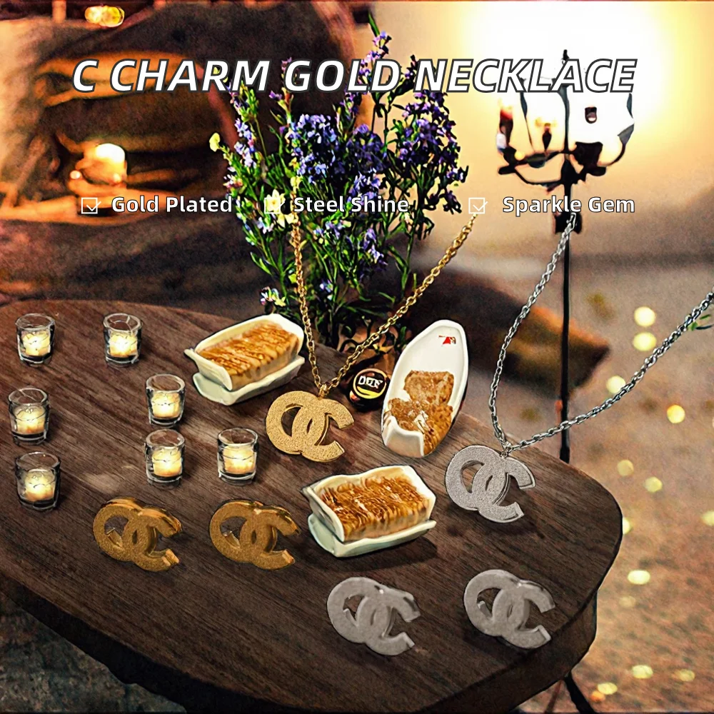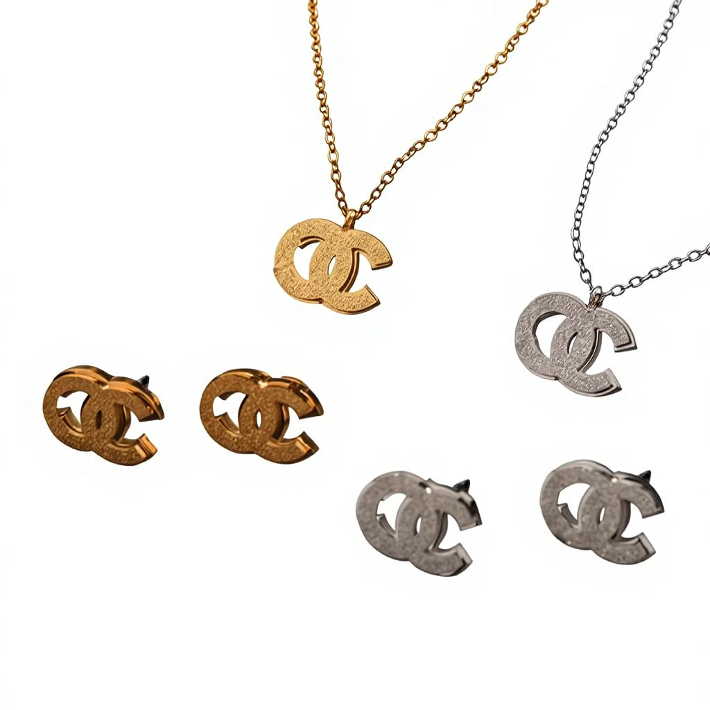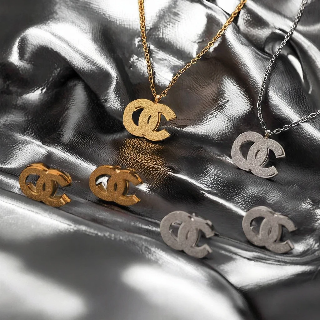 Factory Wholesale Women's Designer Trendy Stainless Steel Jewelry Set 18K Gold Plated Necklace Earrings Party Waterproof PVD