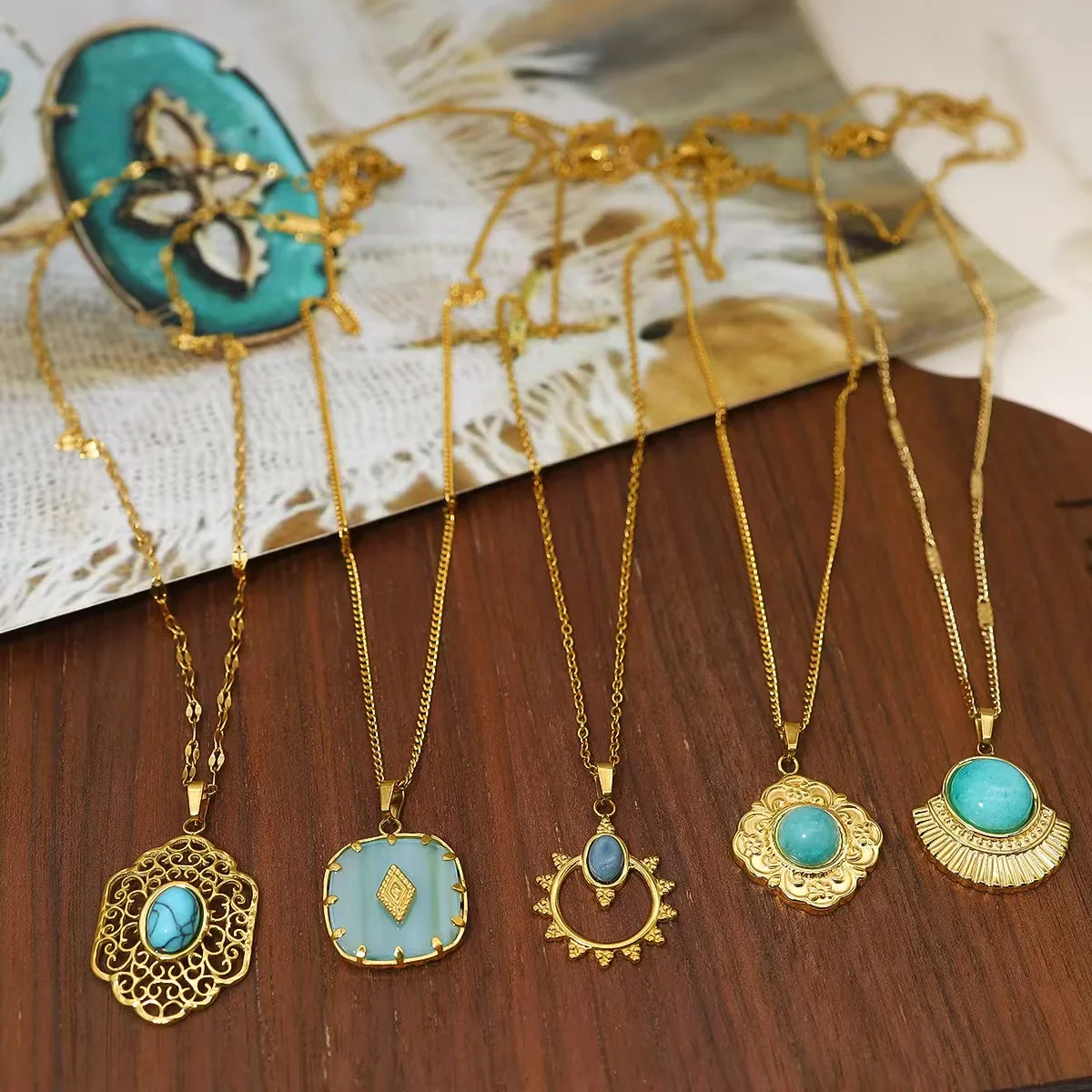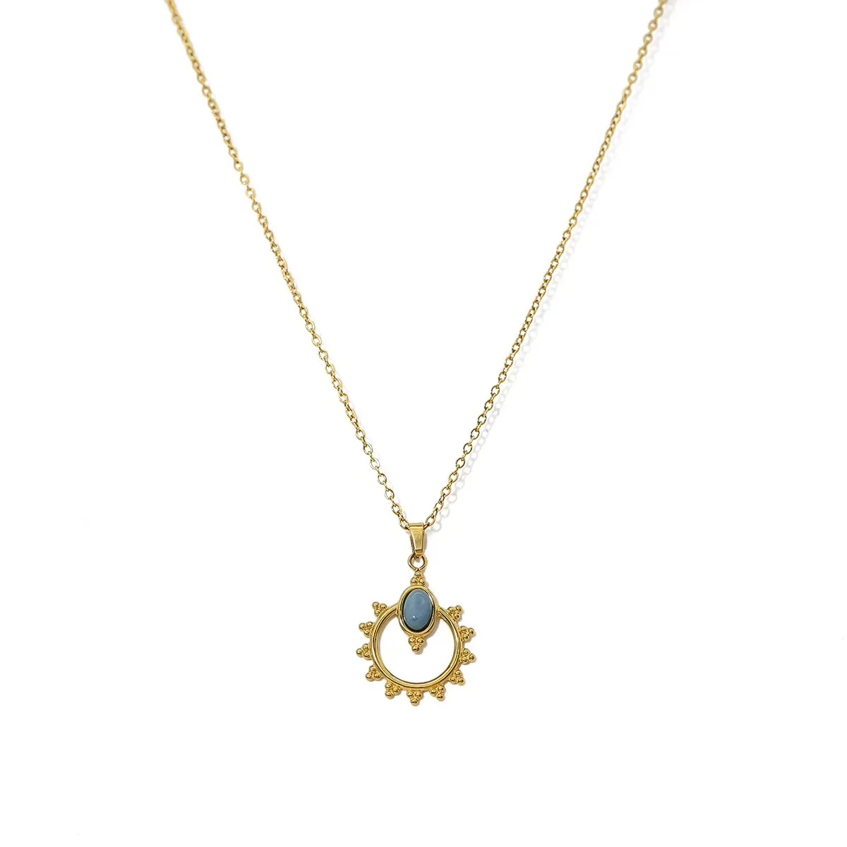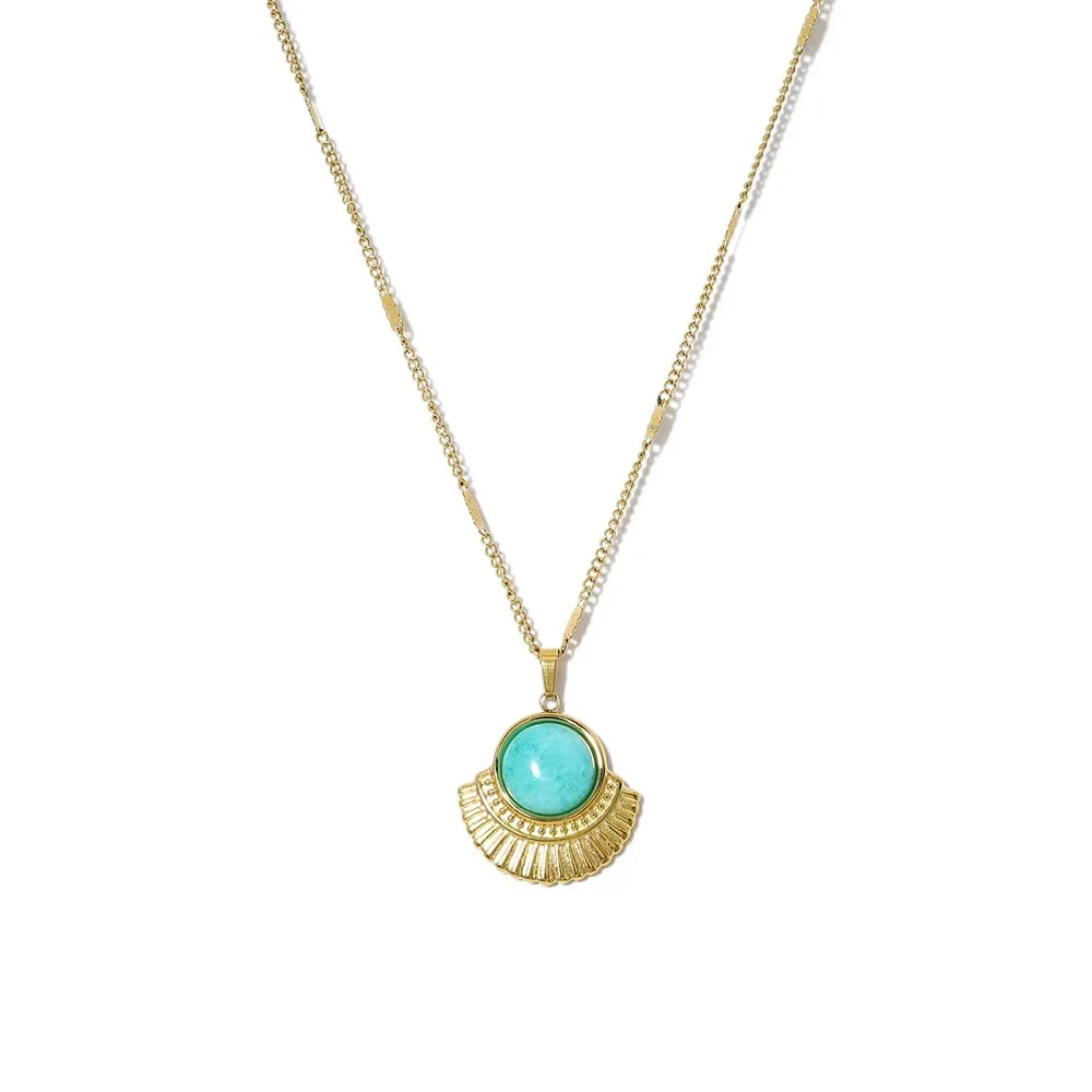 Vintage Stainless Steel Necklace with Geometric Square Pendant 18K Gold Plated Imitation Pearl Rope Chain for Unisex