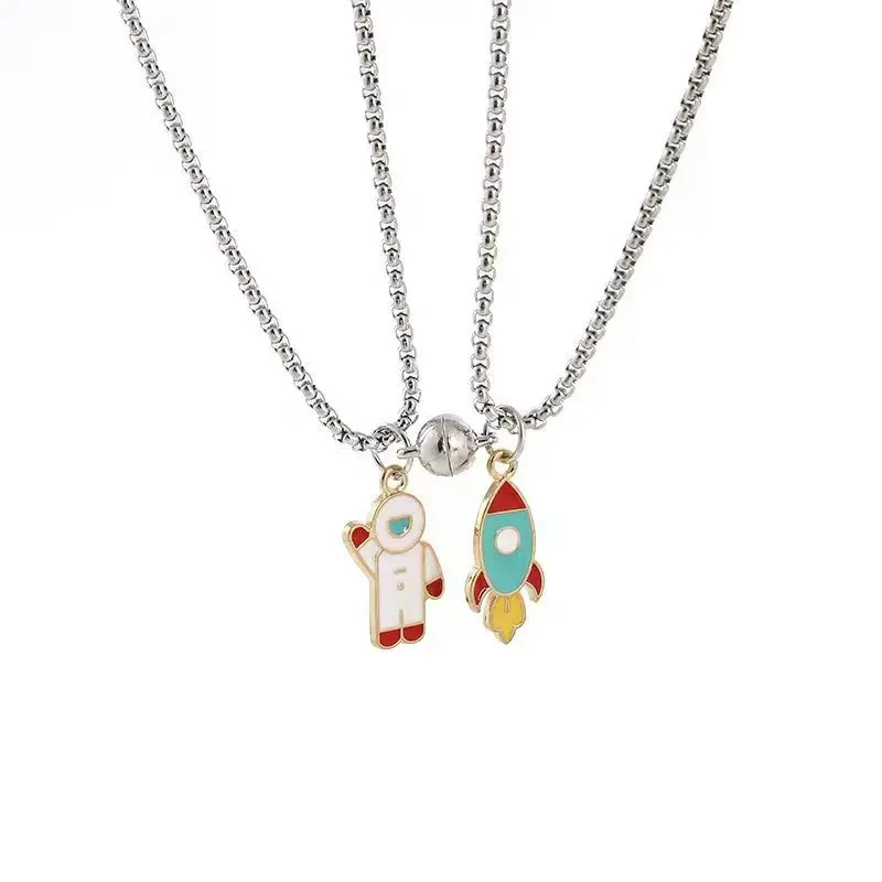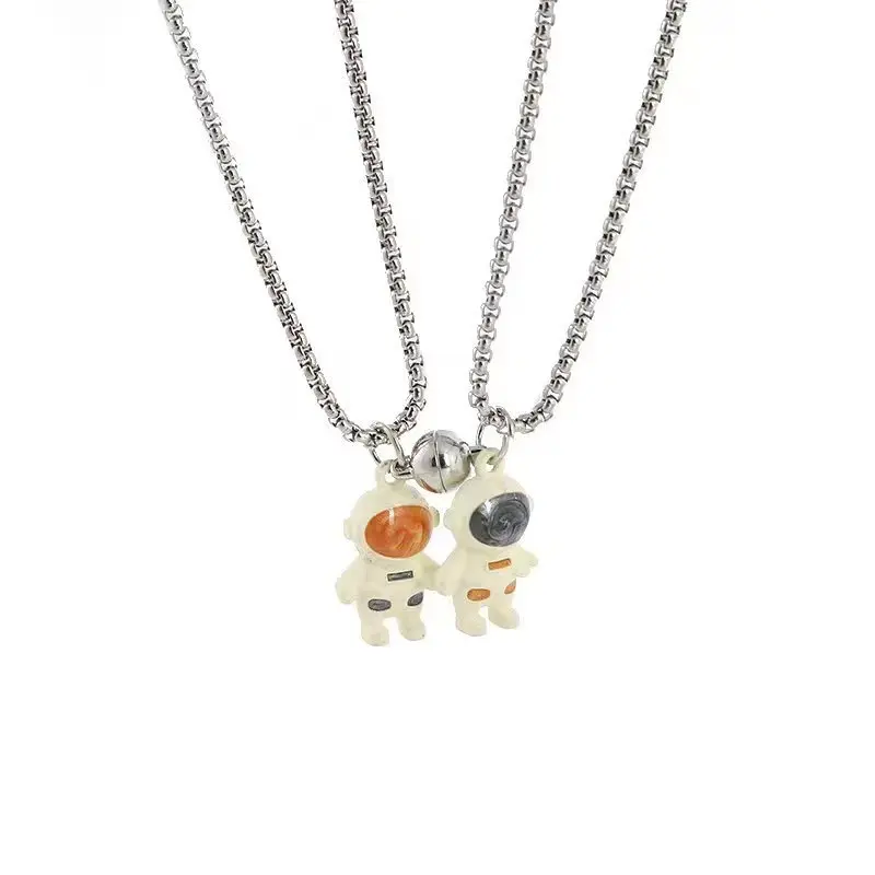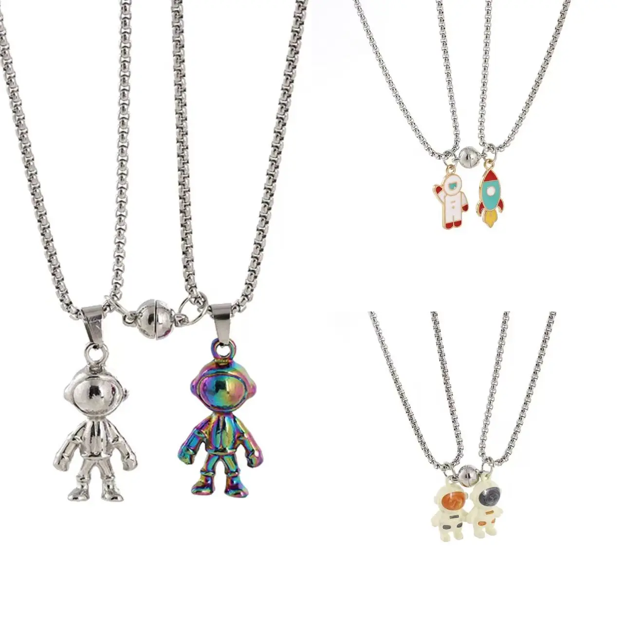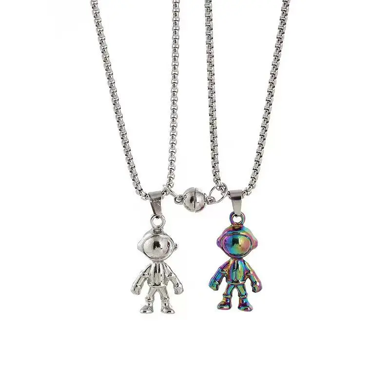Stainless Steel Astronaut Robot Couple Magnetic Pendant Double Chain Necklace, Couple Engagement Gift Factory Wholesale.