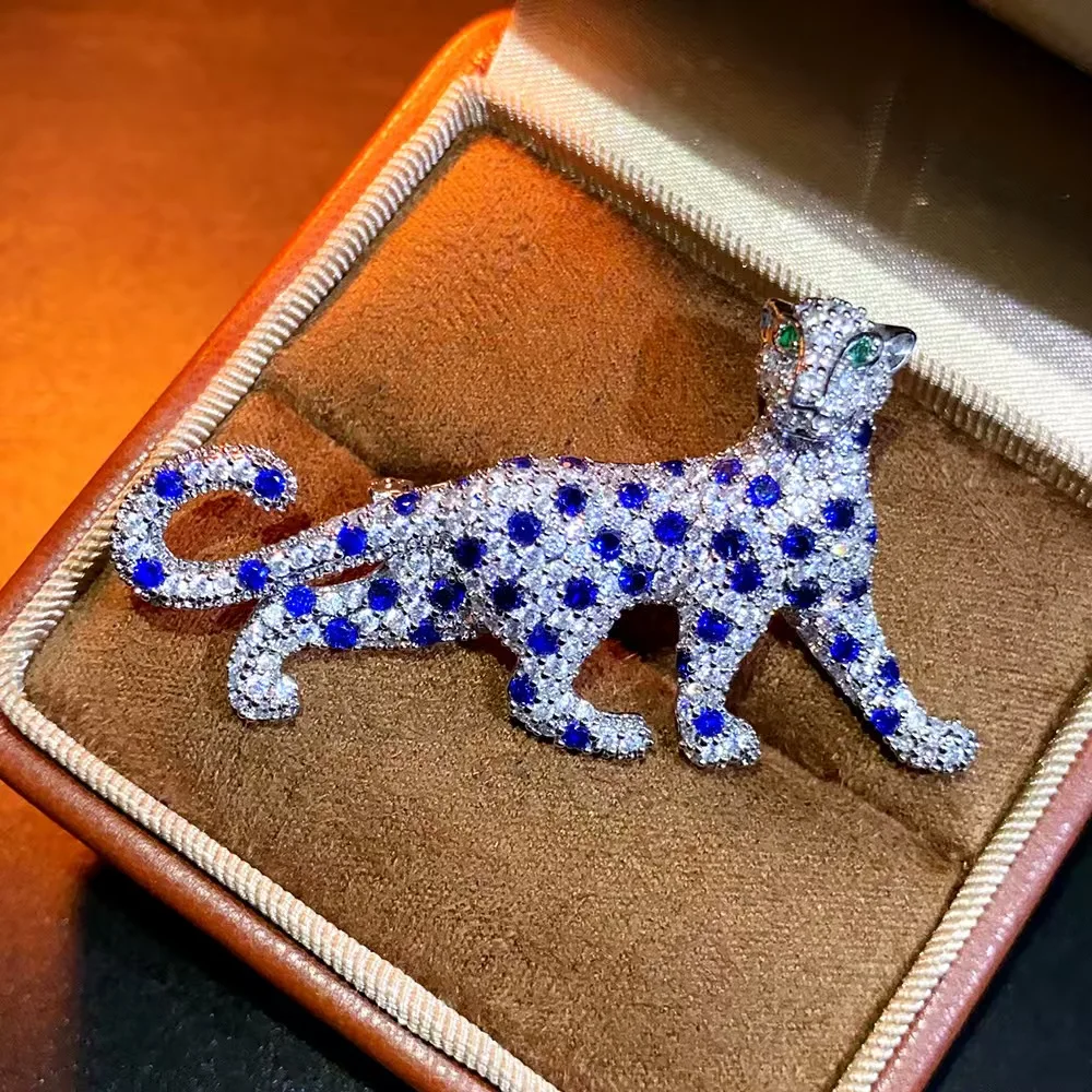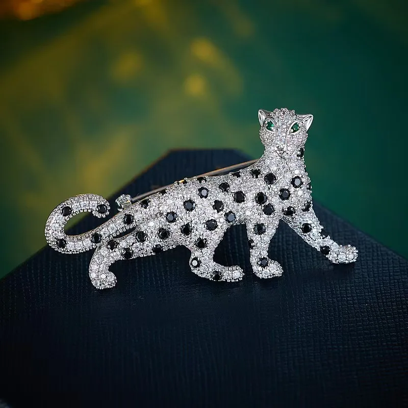 Luxury Leopard Print Brooch, Vintage Zircon Animal Brooch, Made of Copper, Jewelry Corsage, Suit Accessory