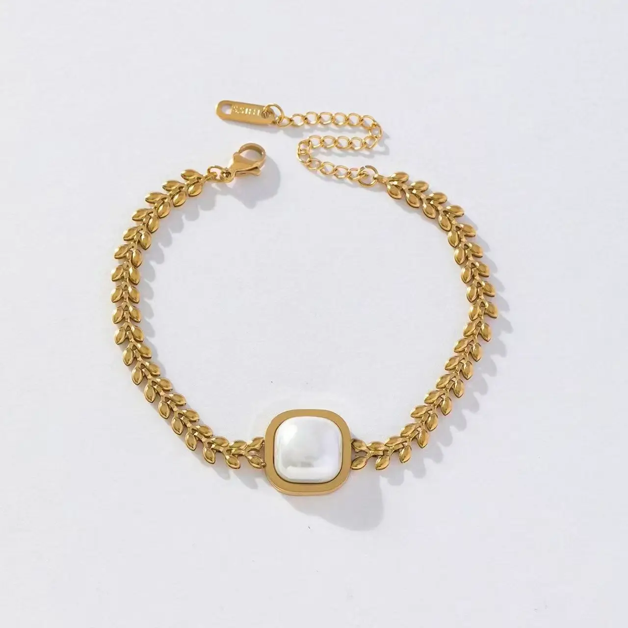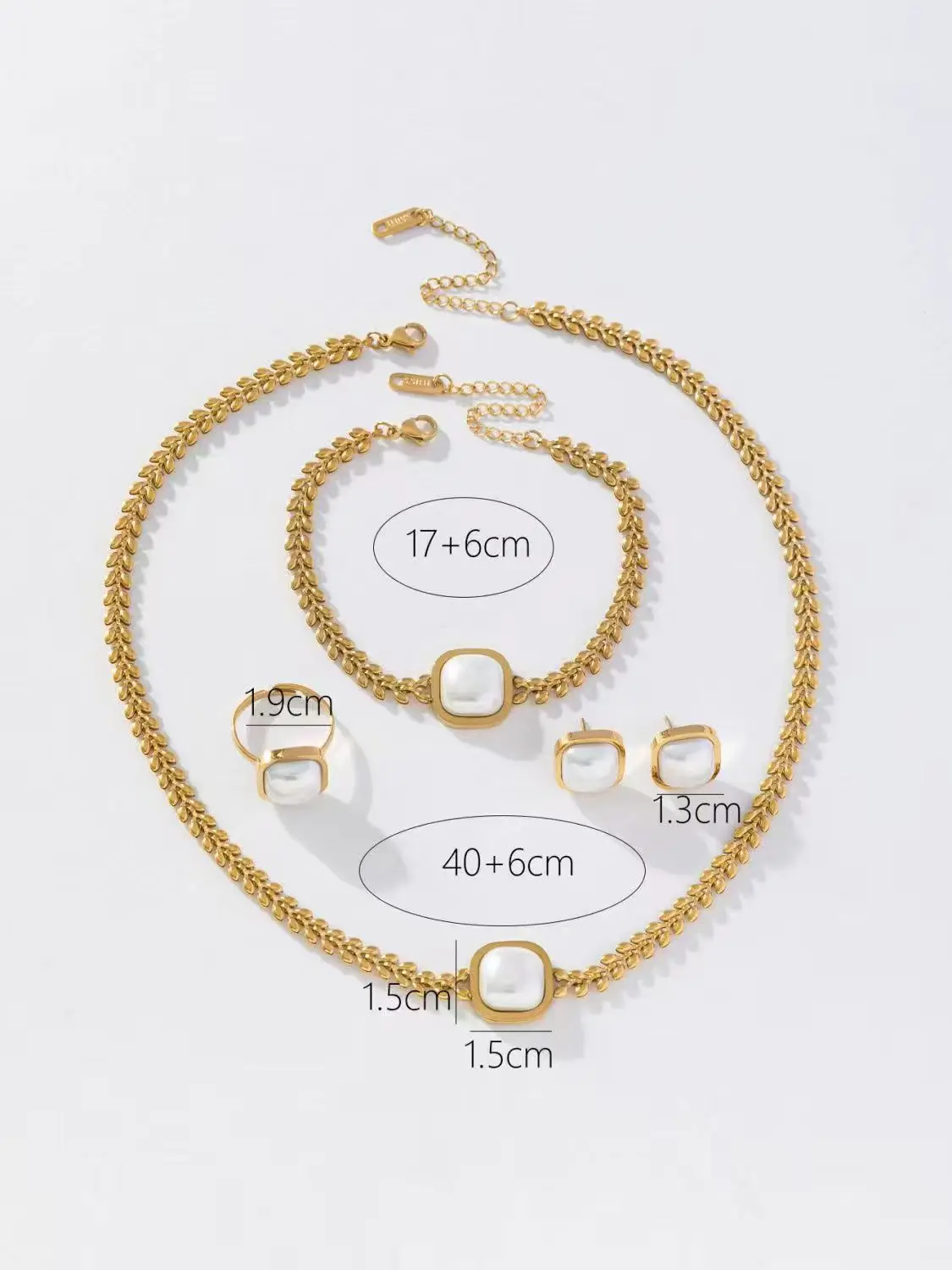 18K Gold Stainless Steel Four-Piece Set Square Imitation Pearl Earrings Bracelets Factory Wholesale for Weddings Gifts