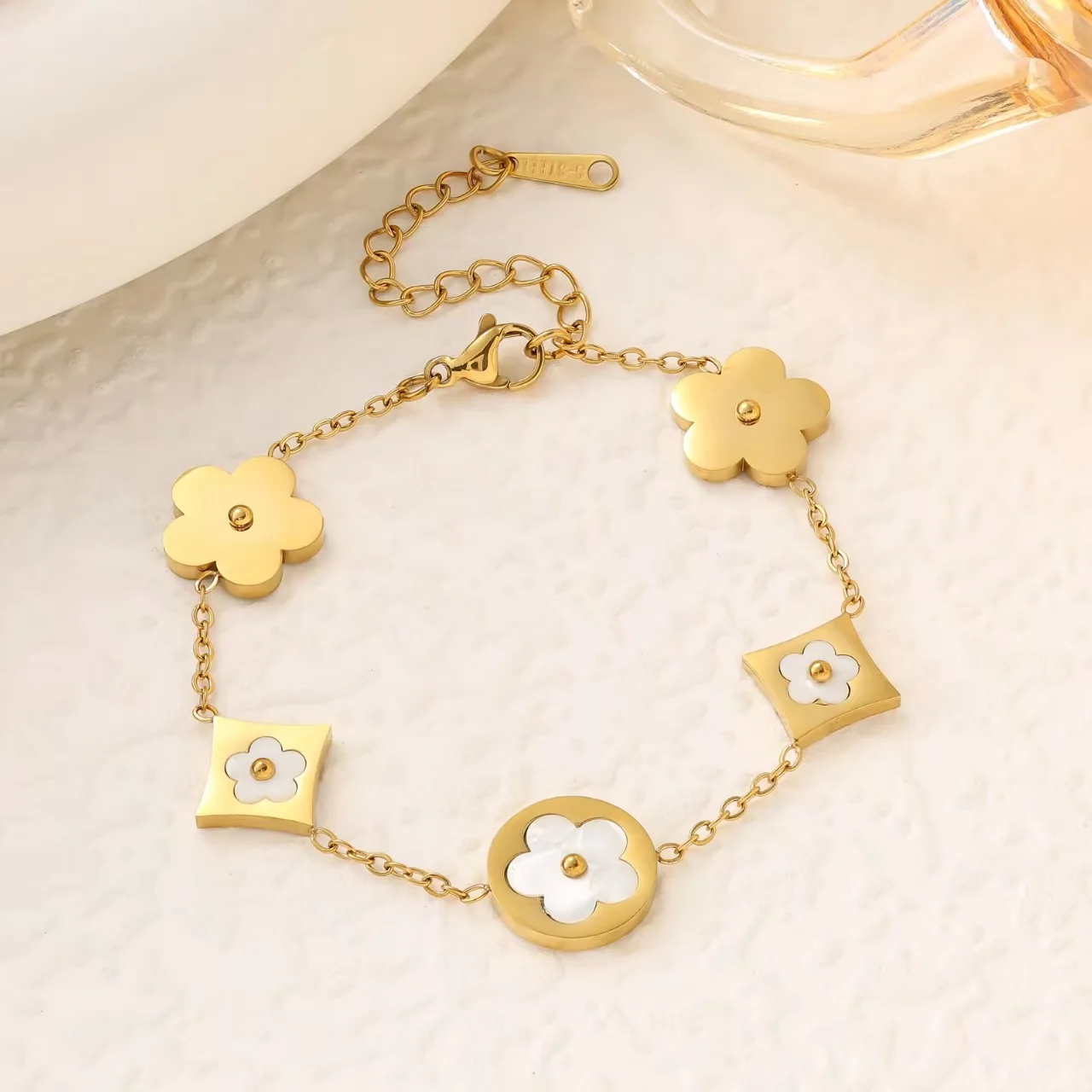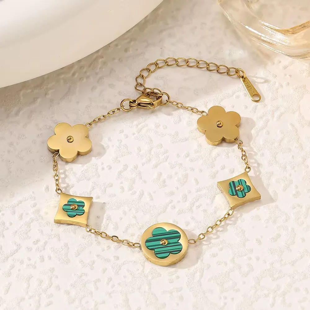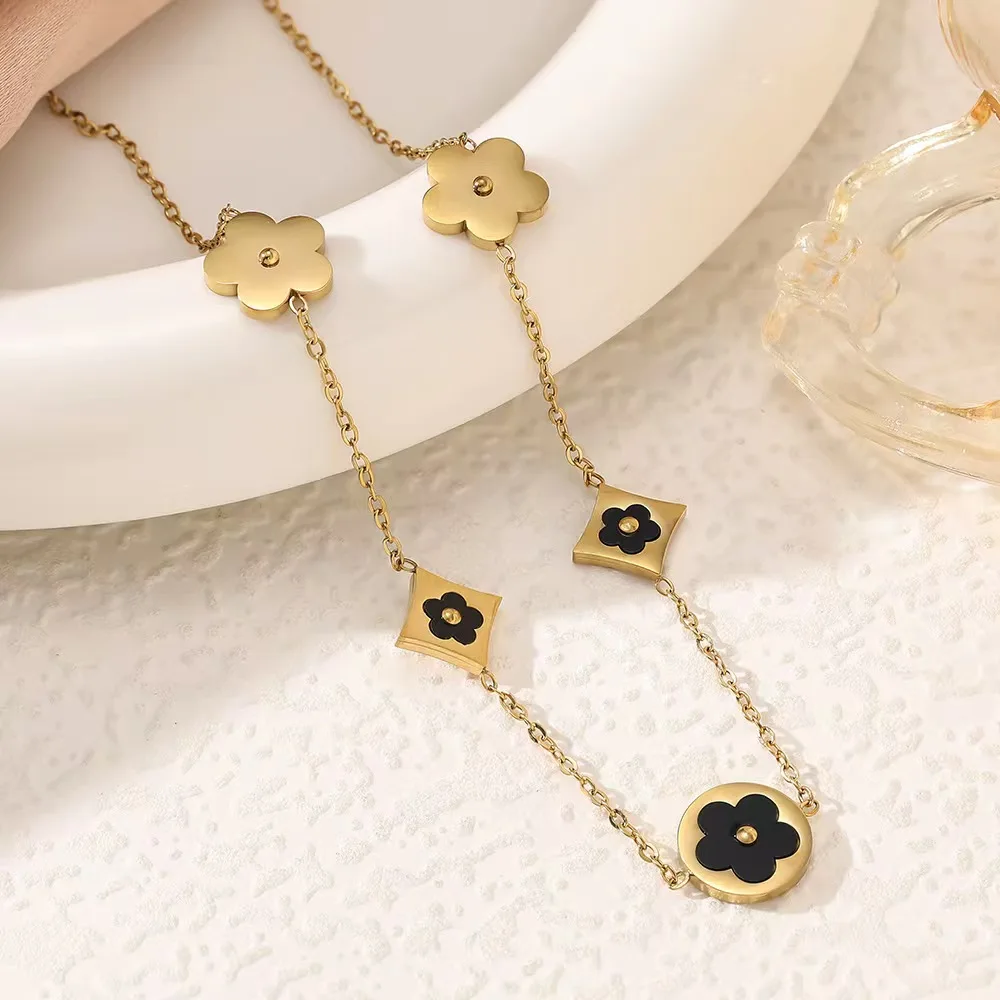 18K Gold Five-leaf Clover Stainless Steel Unisex Double-Sided Fritillary Flower Bracelet Necklace Set