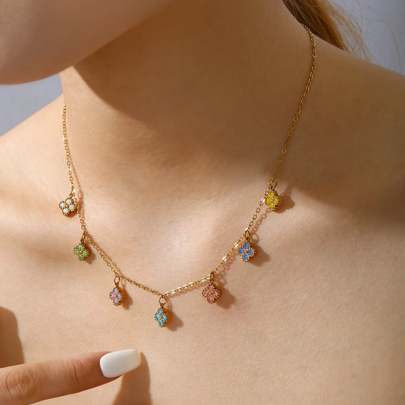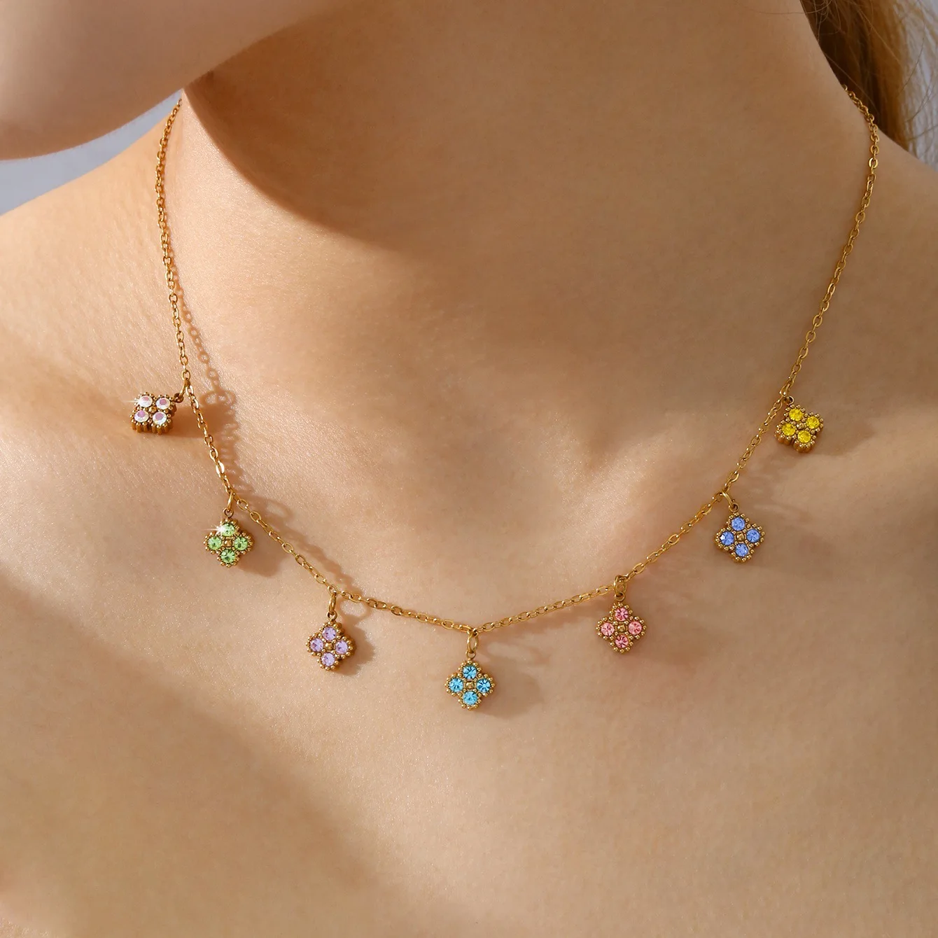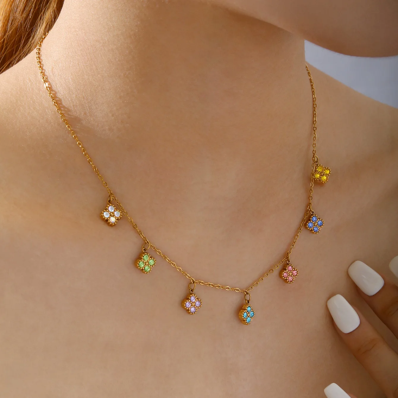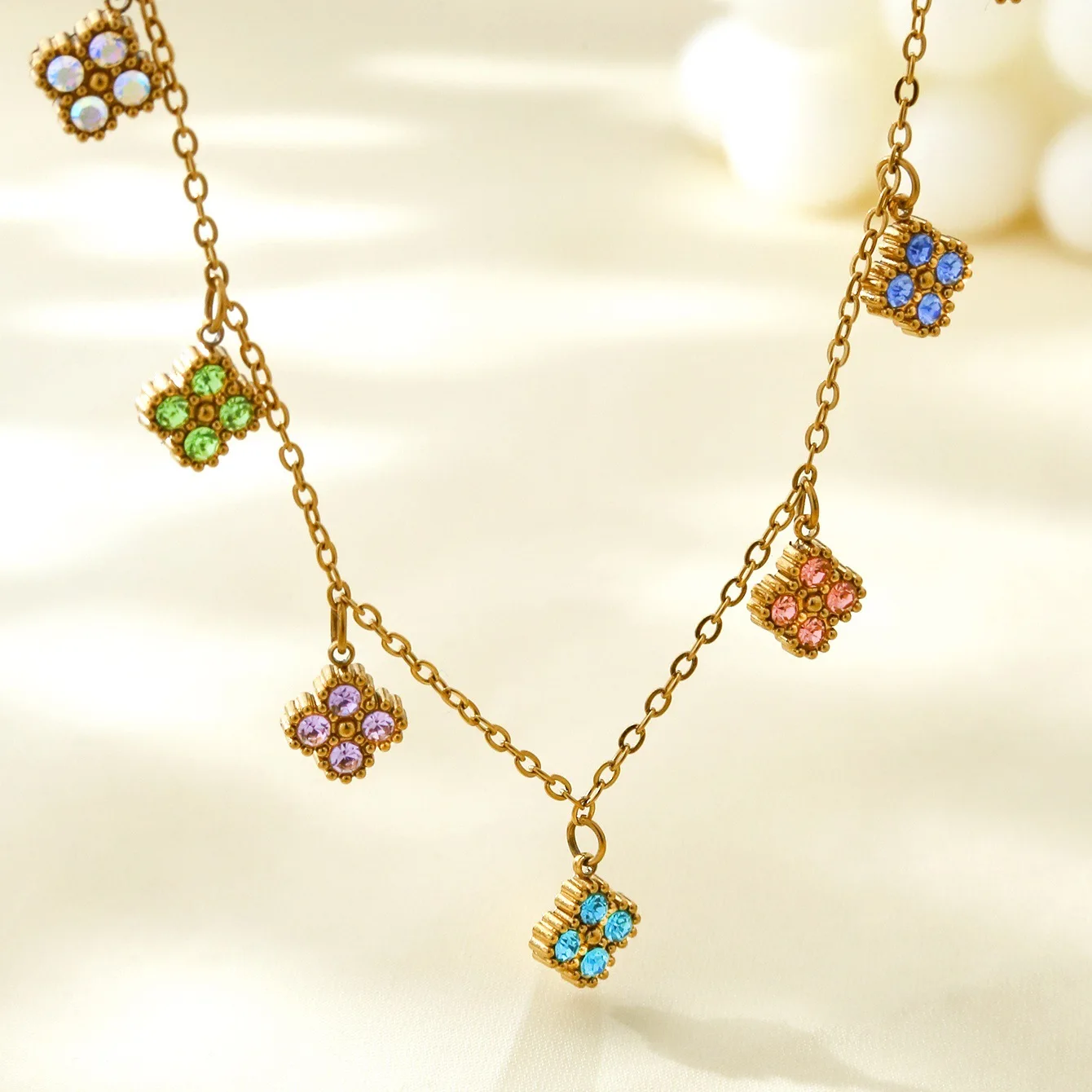 Designer Brand Lucky Color Tassel Four-leaf Clover Pendant Necklace, Stainless Steel 18k Gold Plated Necklace Wholesale