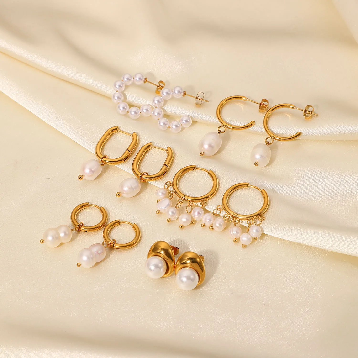 Hot Sale Trendy C Shape Stud Earrings 18K Gold Plated Stainless Steel with Freshwater Pearl Hoop Natural Drop Earrings