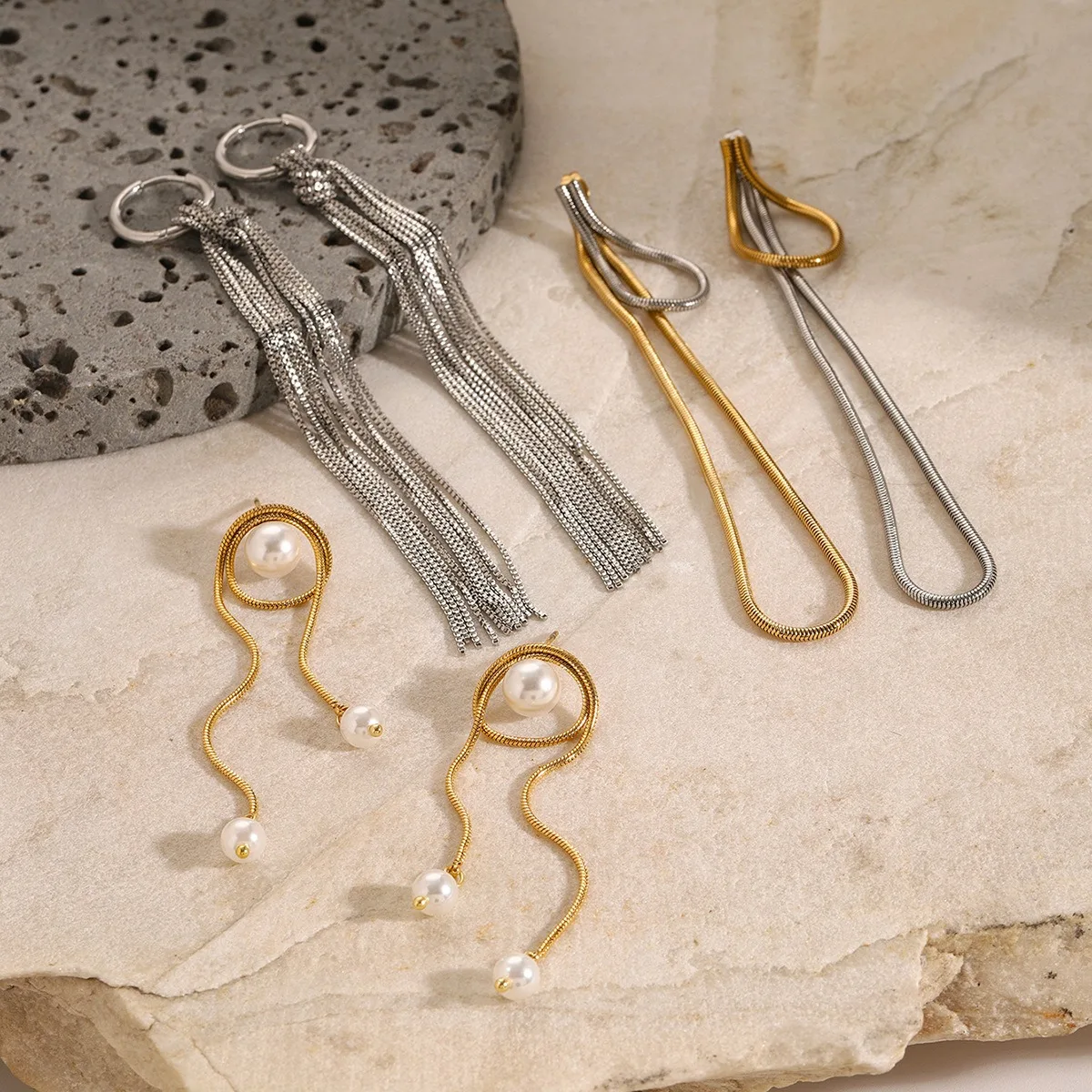Sophisticated 18K Gold Tassel Clip-On Earrings for Women Stylish Newest Stainless Steel Long Chain Tassel Tendances