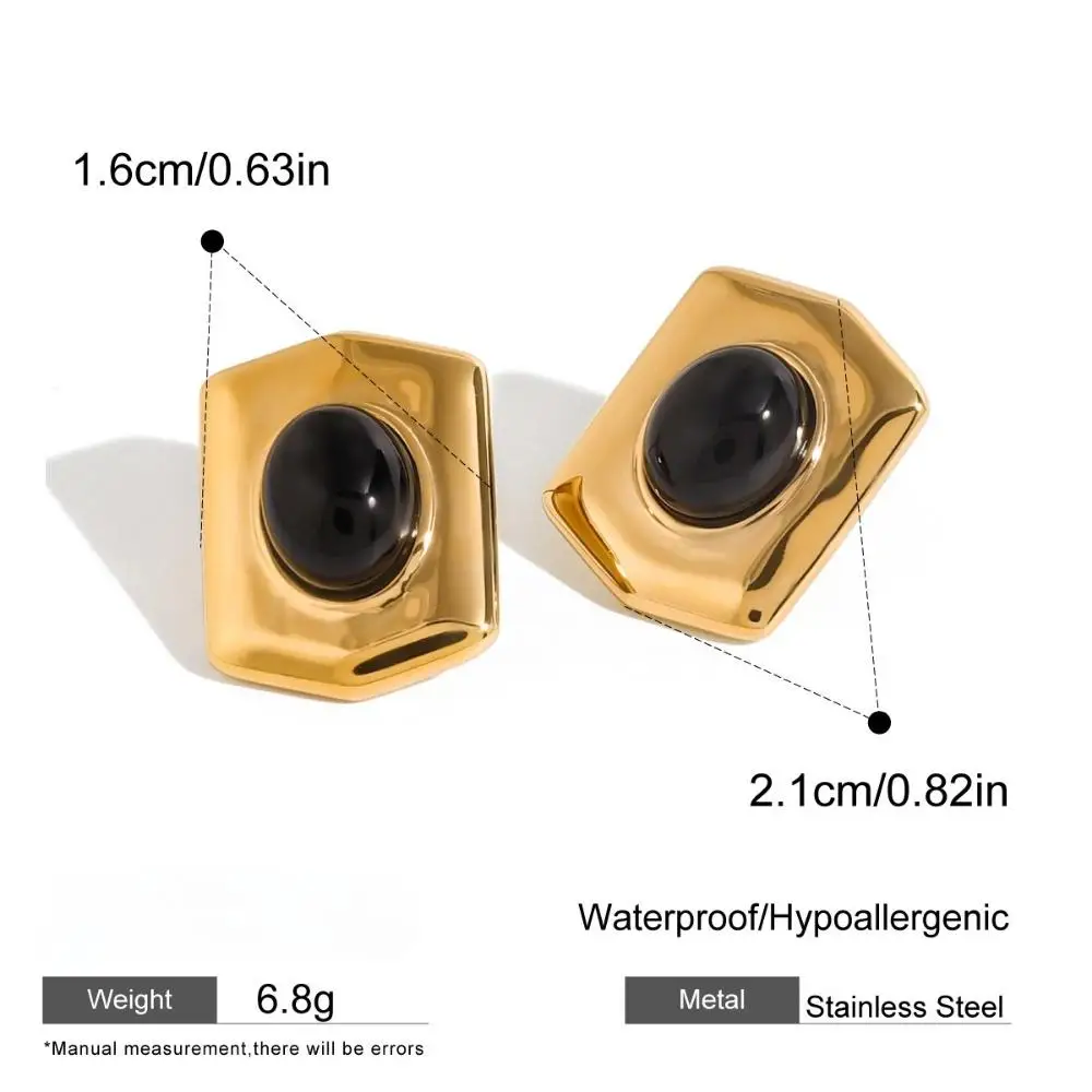 Retro Black Agate Stone Trendy Geometric Earrings Stainless Steel Waterproof Jewelry 18K Gold Plated Chunky Stud