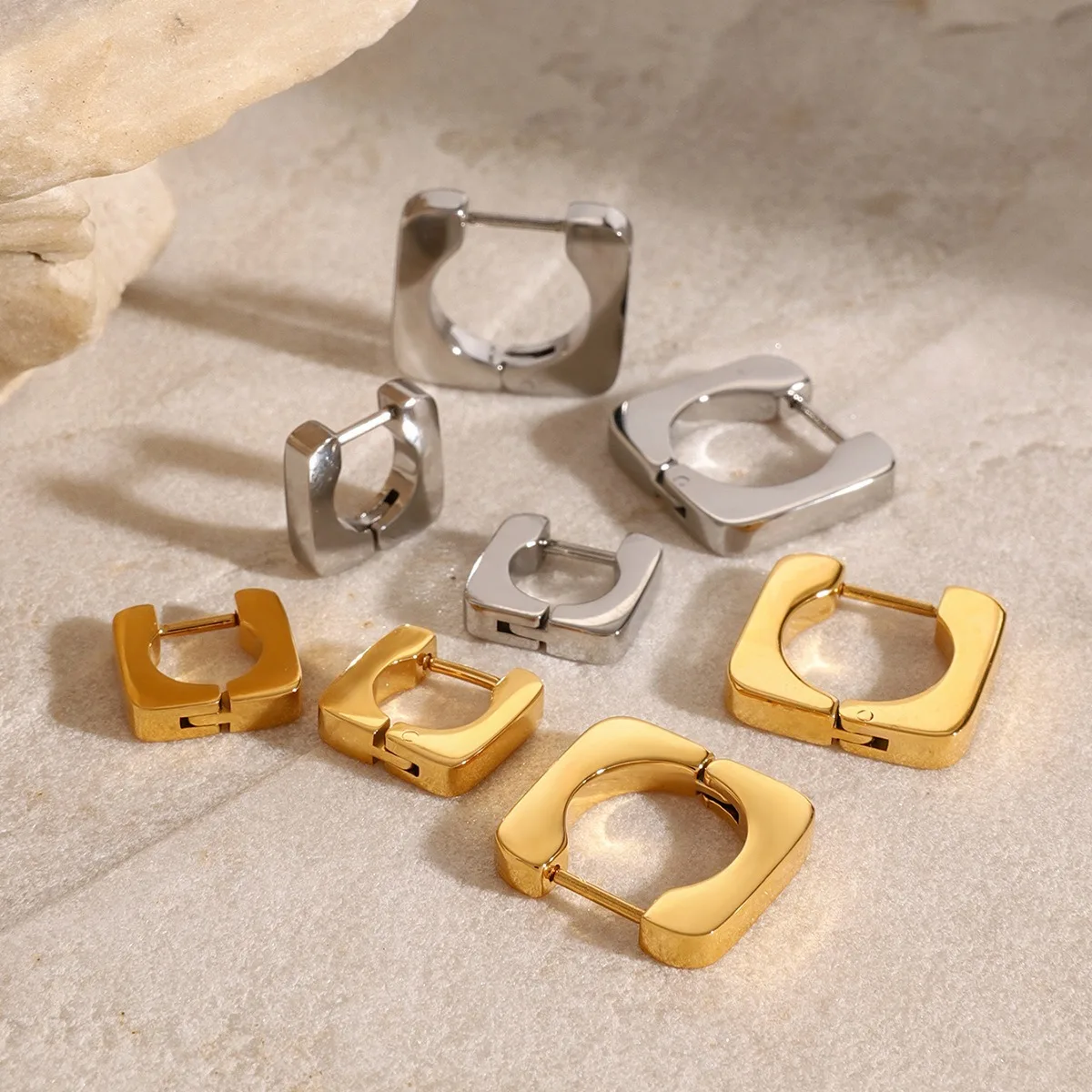 New Arrival 18K Gold Plated Minimalist Hoop Earrings Geometry Style Stainless Steel Versatile Trendy Jewelry