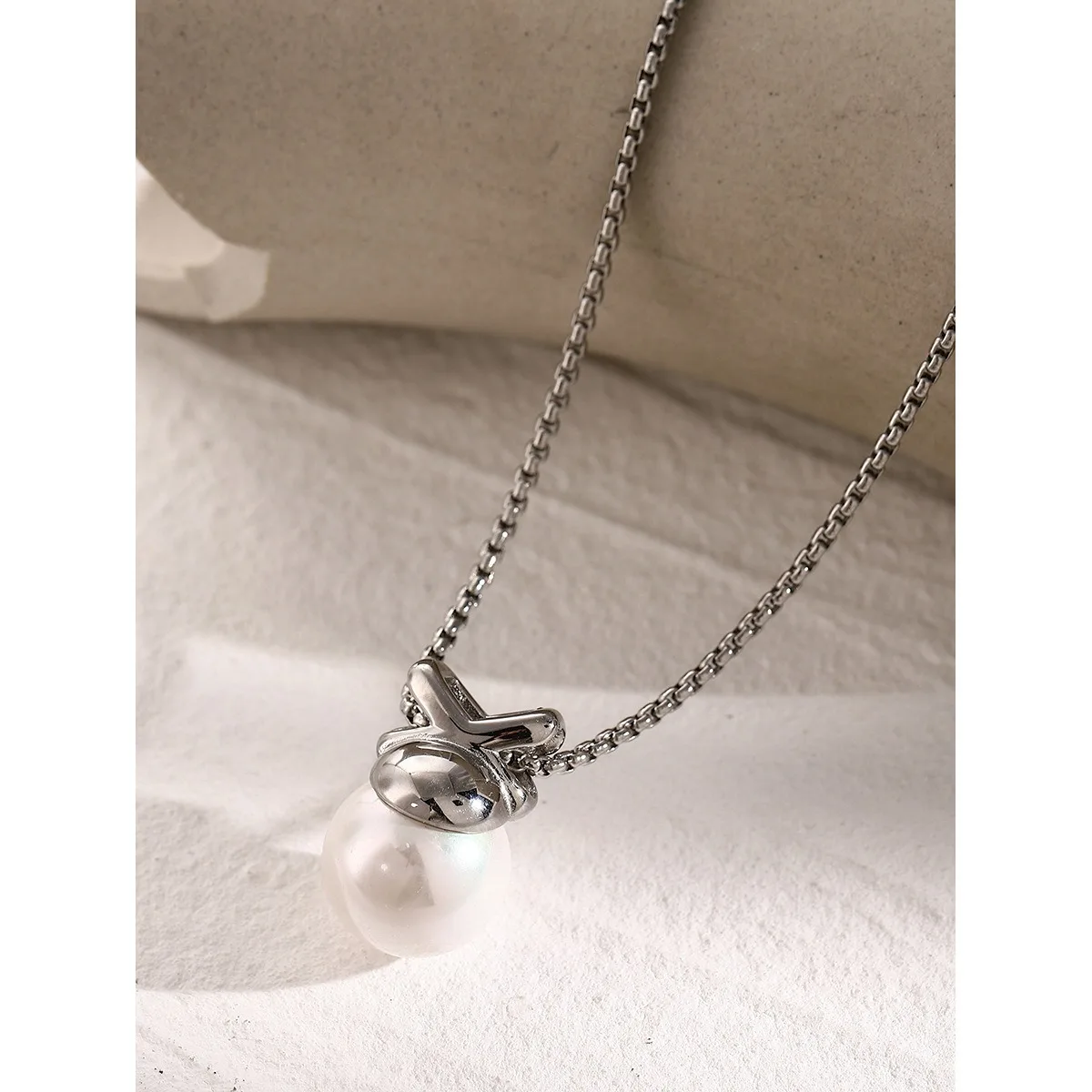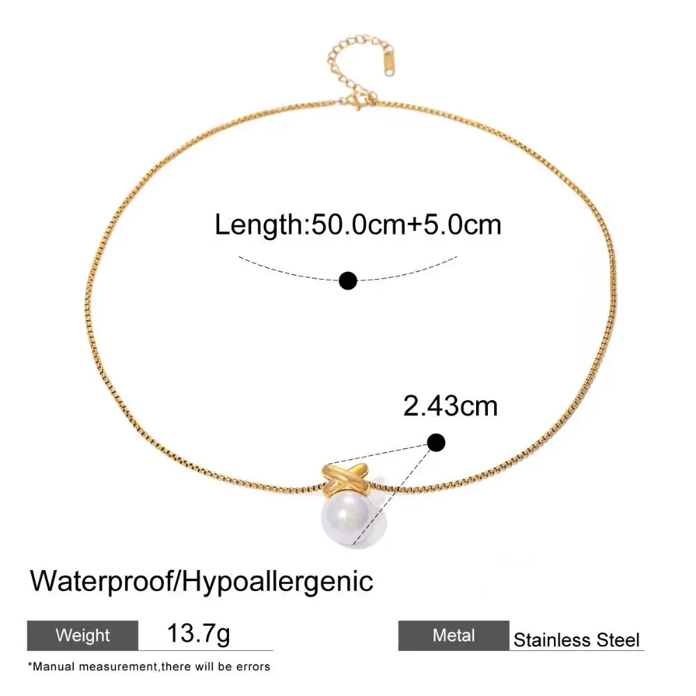 Best Selling Summer Hot Stainless Steel Gold Plated Minimalist Colorful Large Pearl Pendant Necklace for Women