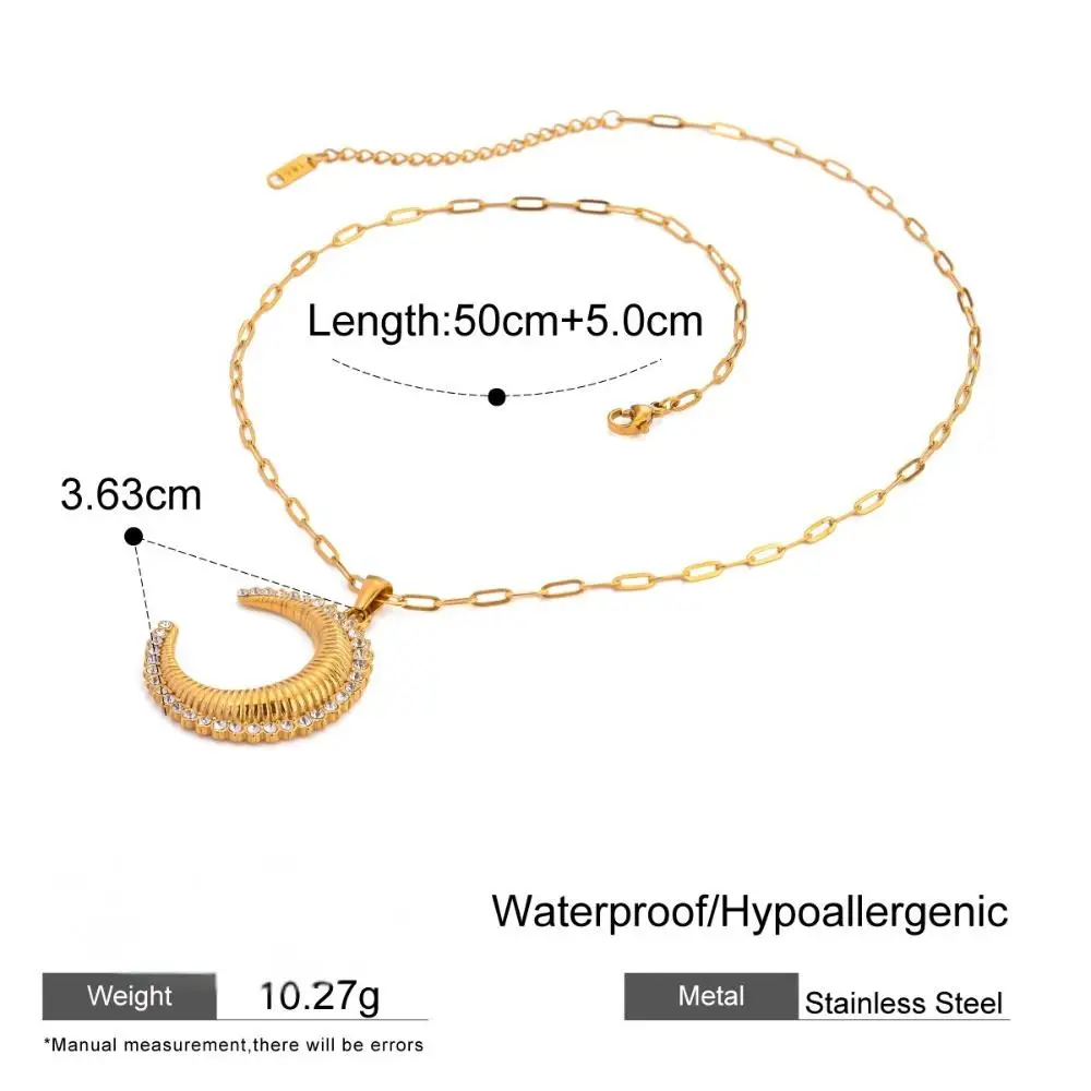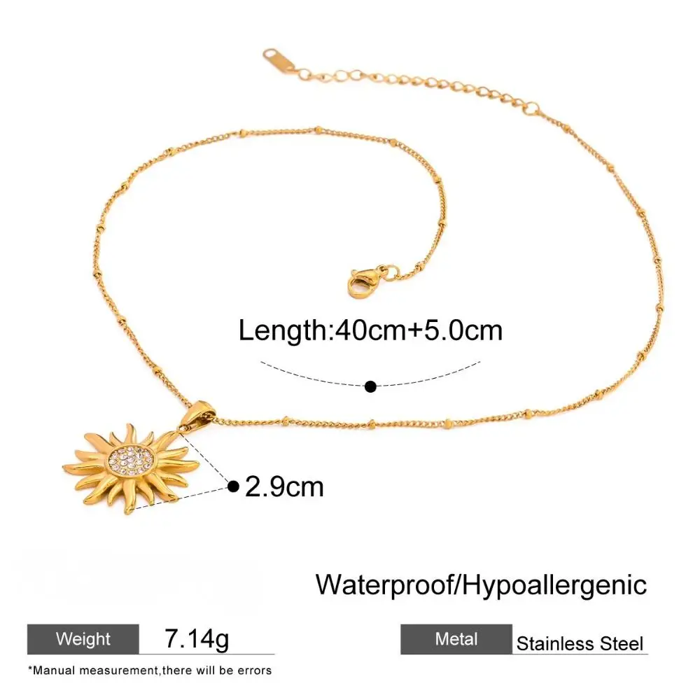 High-End Ins Sunflower Clavicle Chain Stainless Steel Gold Plated Inlaid Zircon Moon Pendant Necklace