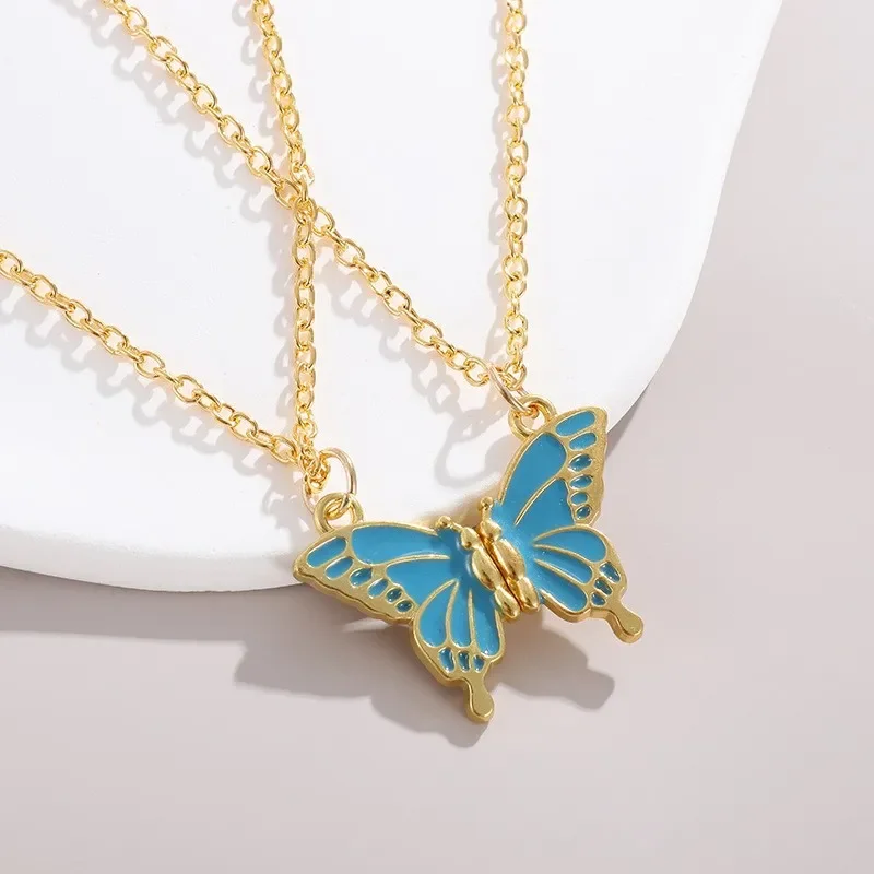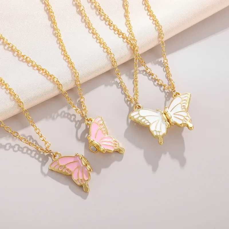Wholesale Stainless Steel Enameled Necklace with Multicolor Magnetic Butterfly Pendant Gold Plated Stylish Friendship Design