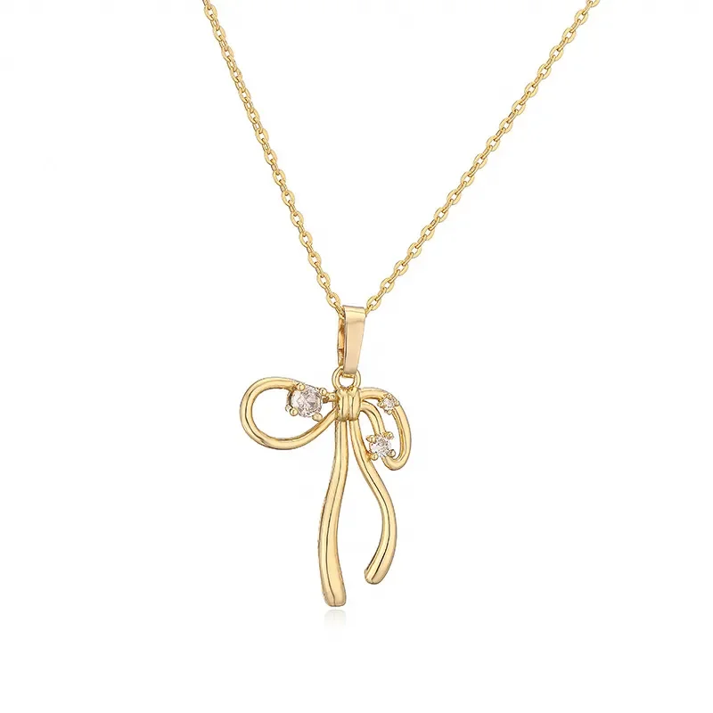 Hotselling Women's Elegant Bowknot Chain Tassel Necklace Pearl Diamond Zircon Necklace Wedding Gifts
