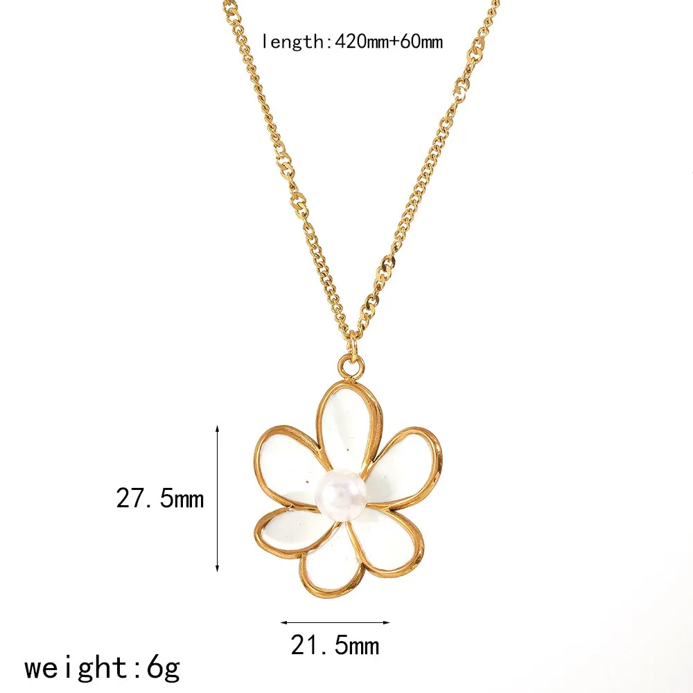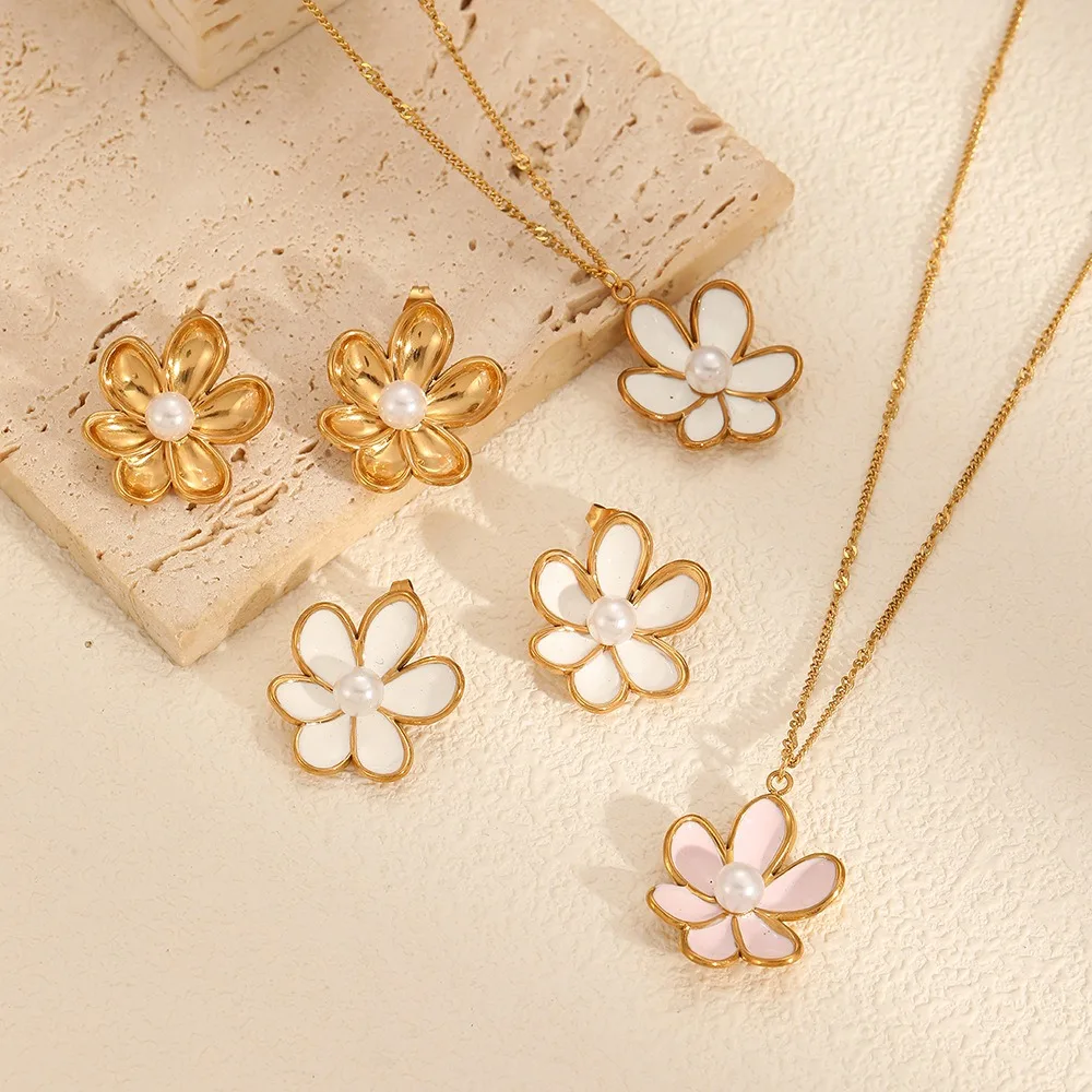 18K Gold PVD Plated Stainless Steel Daisy Flower Pendant Necklace and Earring Set for Women's Party Jewelry or Gift