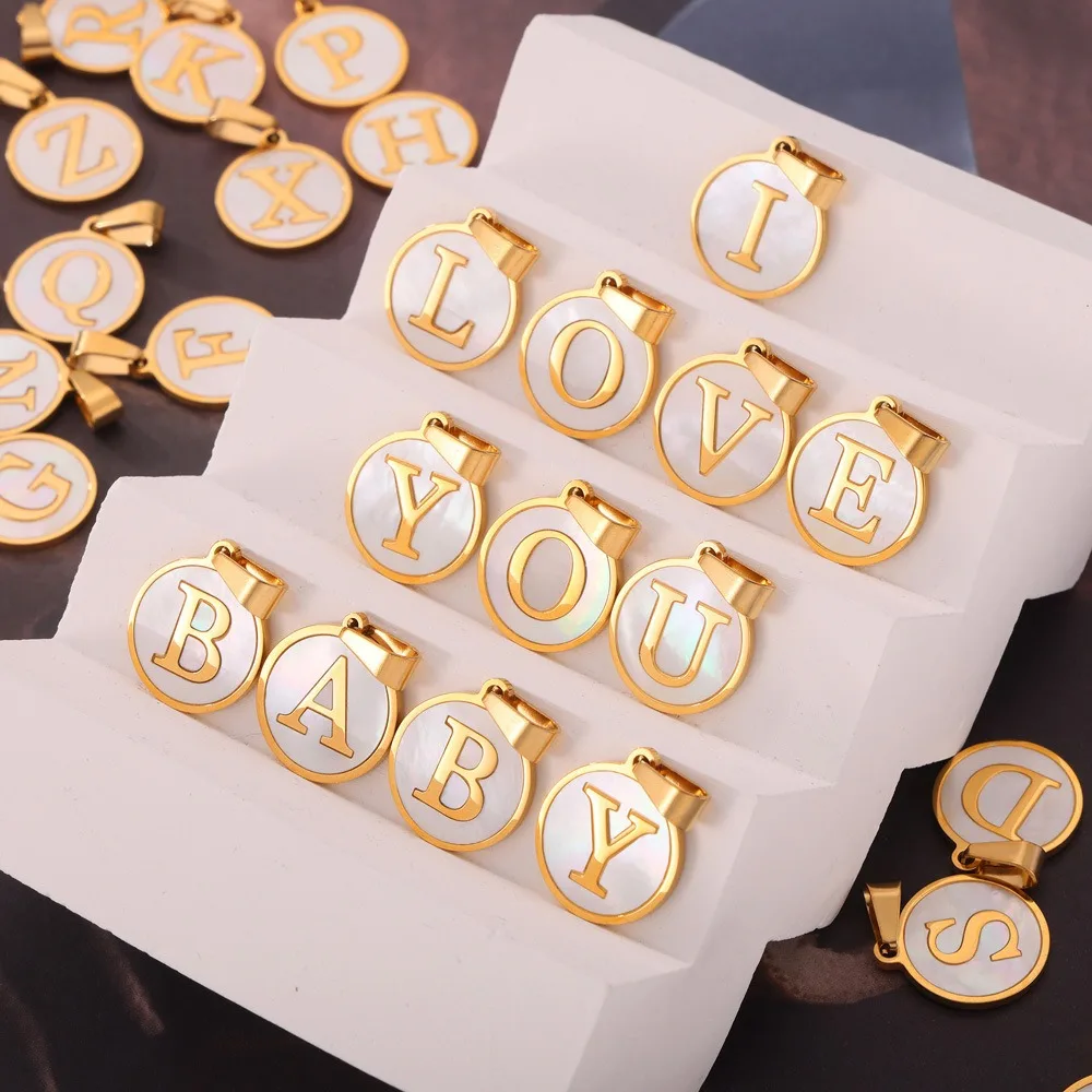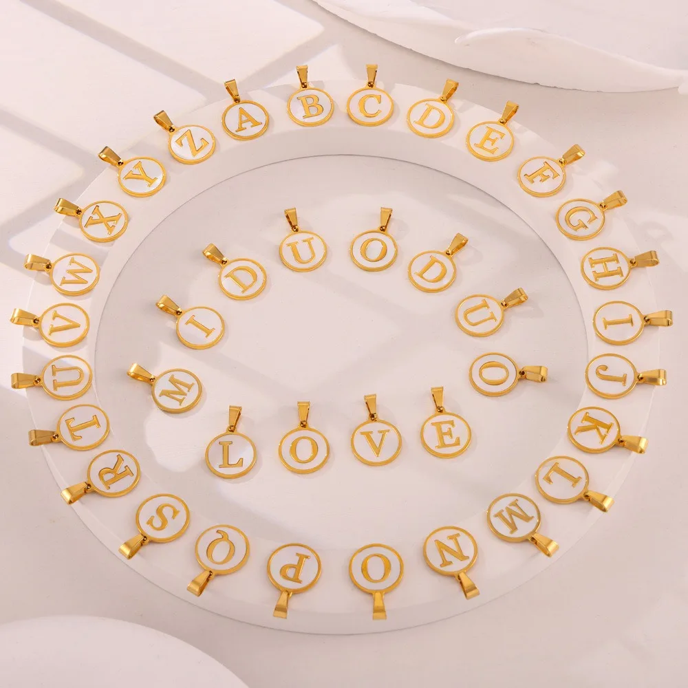 OEM Minimalist Stainless Steel A-Z Initial Alphabet Charms 18K Gold Plated Shell Letter Pendant Custom Jewelry DIY Accessories