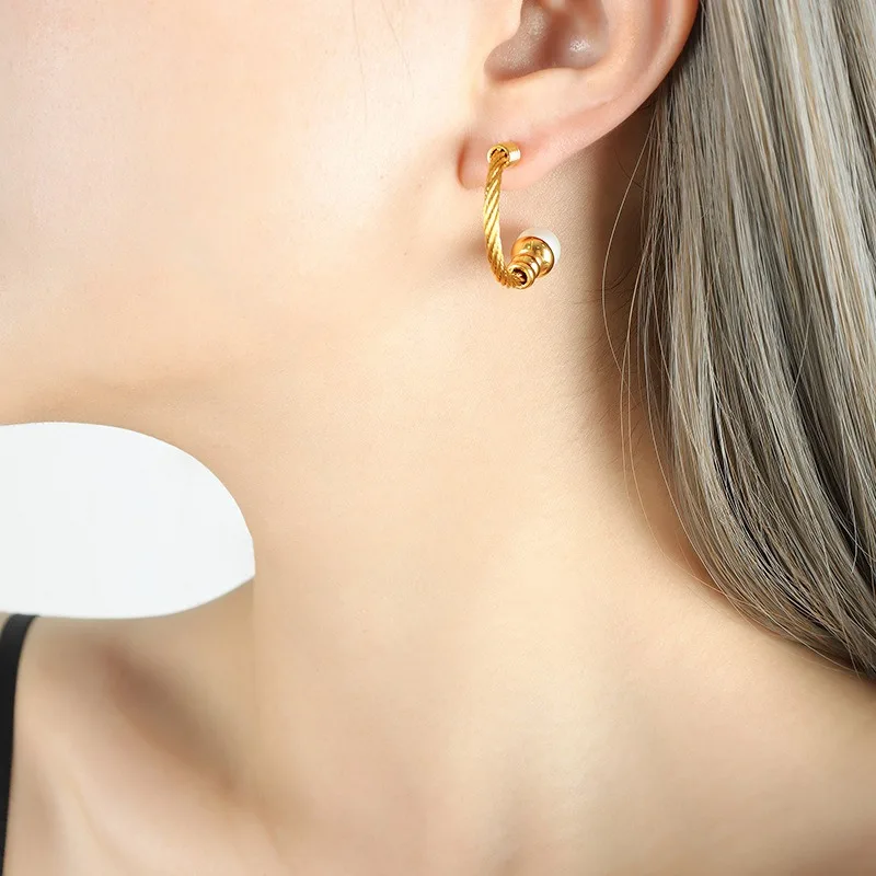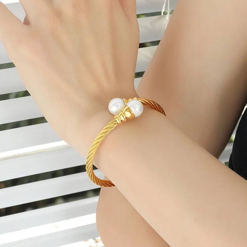 Wholesale Set Stainless Steel Fashion Jewelry for Women Waterproof Hypoallergenic Elastic Bracelets Earrings Pearl for Parties