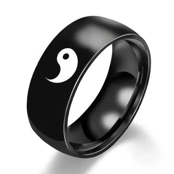 Trendy Yin and Yang Taiji Symbol Ring Stainless Steel Gossip Jewelry for Couples Men and Women's Wedding Bands or Rings