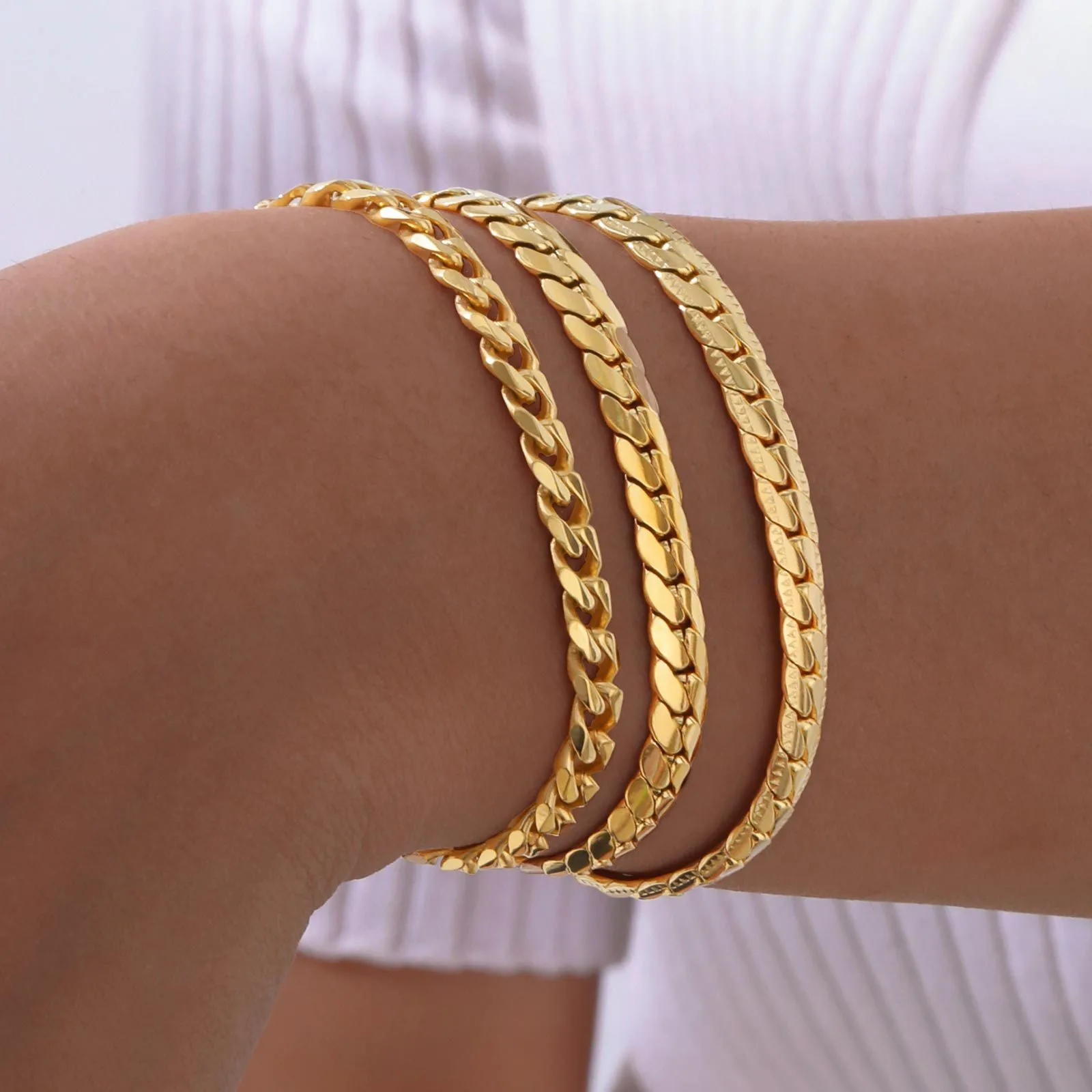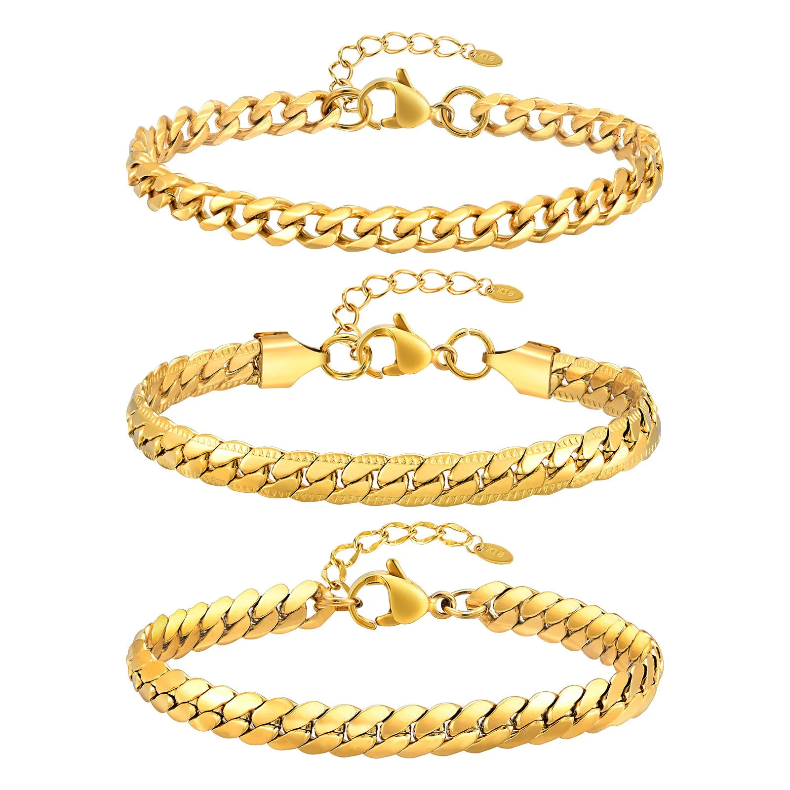 Hot Selling 18K Gold Plated Stainless Steel Cuban Link Chain Bracelet Fashionable Adjustable Chain Jewelry for Men