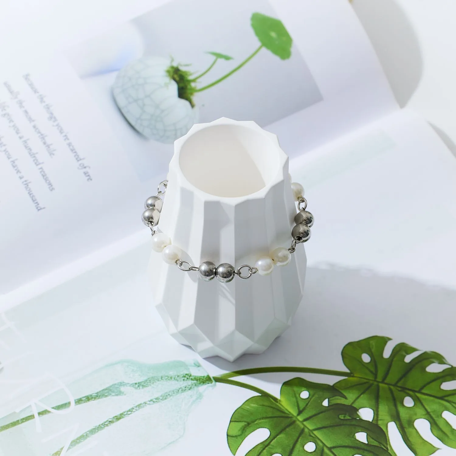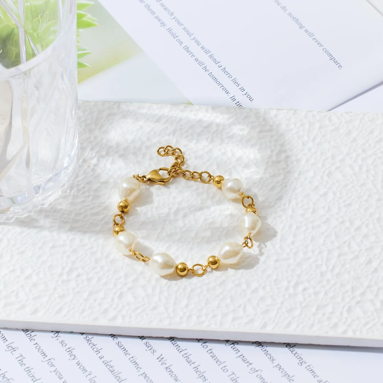 OEM Anti-Allergy Hand Jewelry for Women New Design Stainless Steel Irregular Round Pearl Bracelet Fashionable Bangles