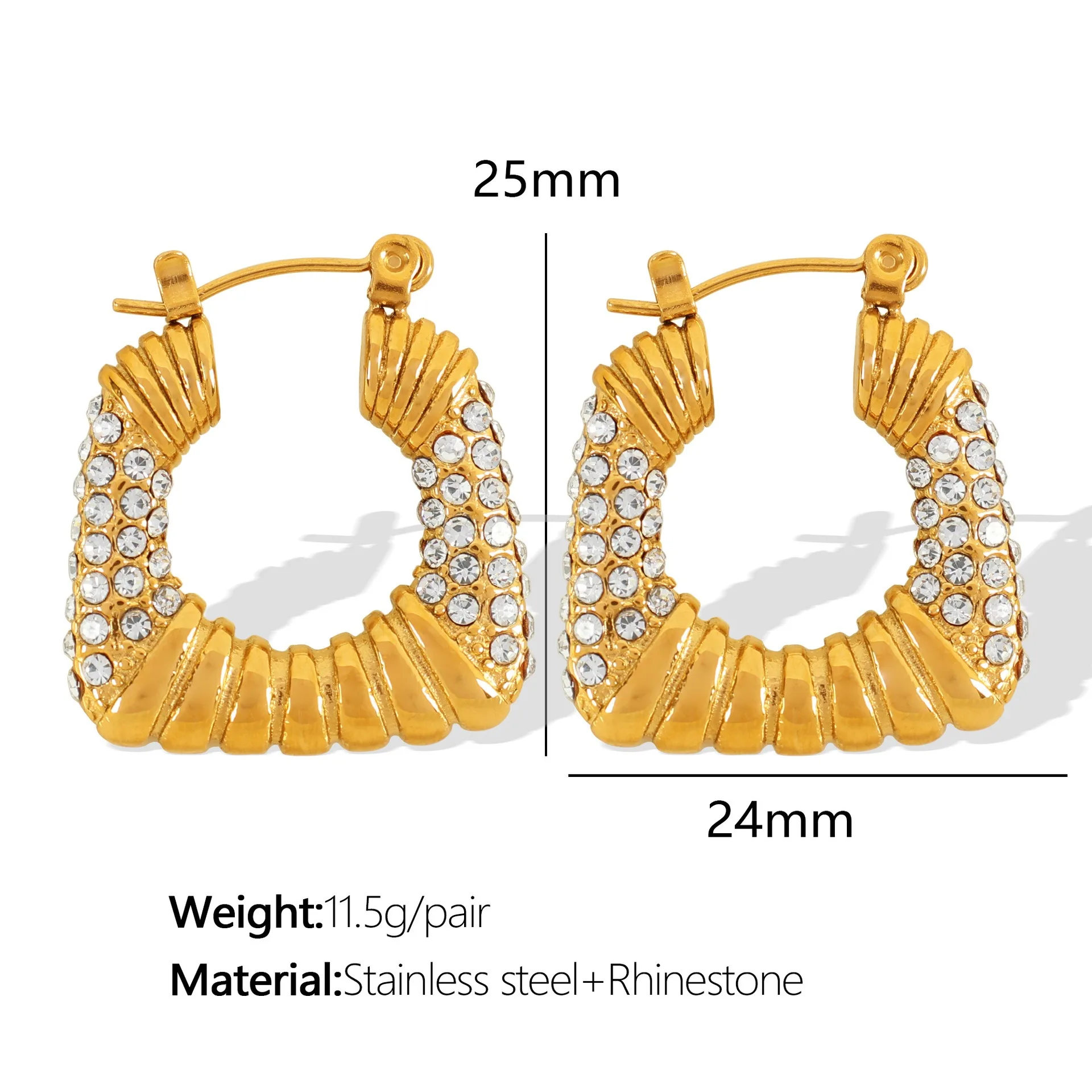French Personality Stainless Steel Women's U-Shaped Hoop Earrings Irregular Inlaid Rhinestone and Pearl Fashion