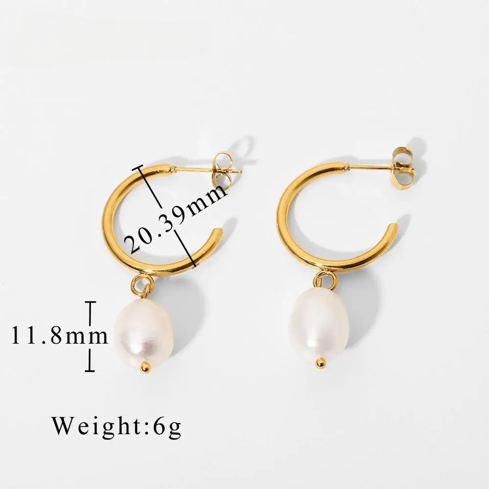 Ins Fashion Gold Plated Stainless Steel C Shape Pearl Drop Earrings Exquisite Jewelry for Women