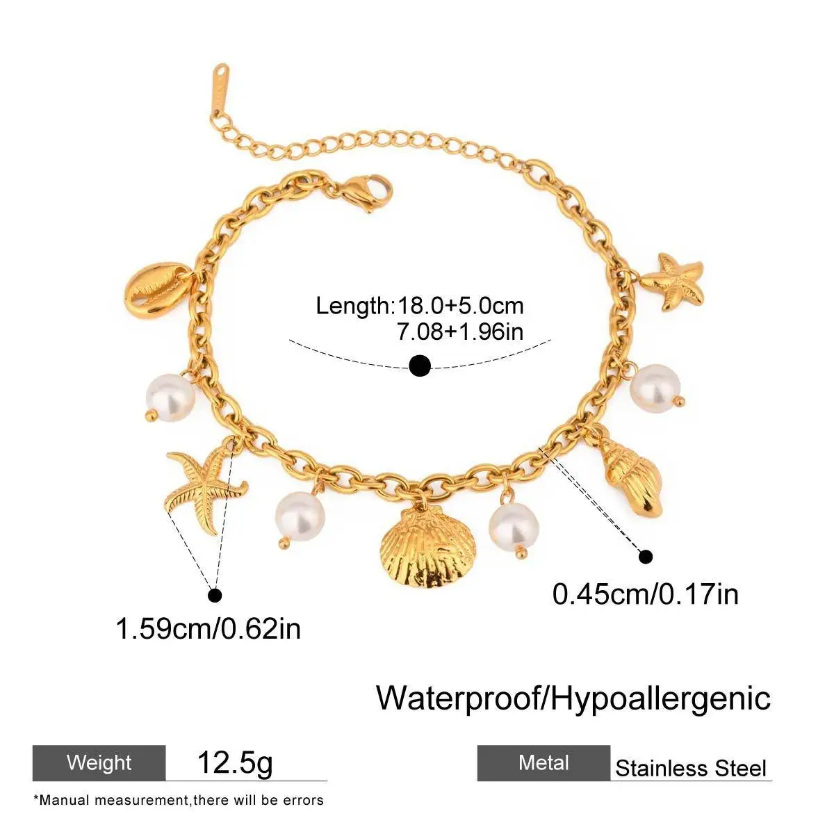 New Hot Ocean Beach Stainless Steel Waterproof Jewelry Multi-Charms Bracelet with Pearls Conch Shell Starfish Pendant