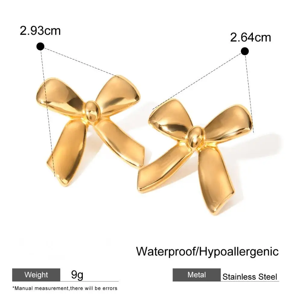 Luxury Design Gold Stud Earrings for Girls and Women Trendy Stainless Steel Bow Studs Lovely Jewelry