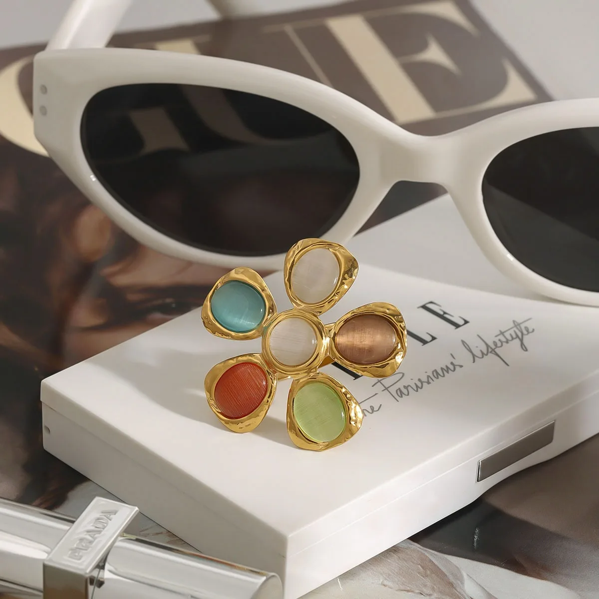 European American Style 18K Gold Stainless Steel Ring Luxury High-End Gemstone Jewelry with 18K Gold Plating for Holidays