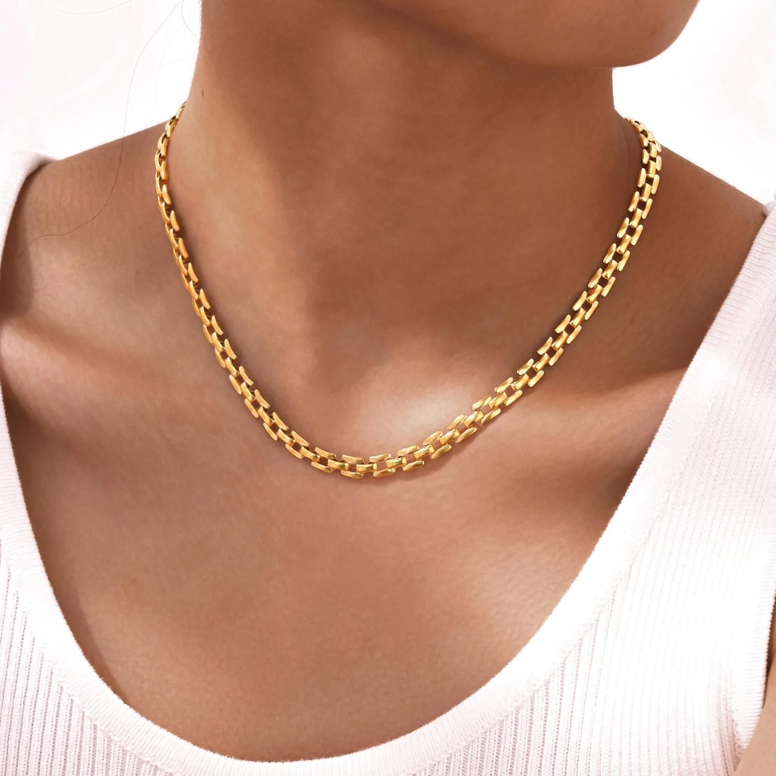 Hip Hop Style 18K Gold Plated Stainless Steel Jewelry Handmade Chunky Watch Chain Necklace for Gift