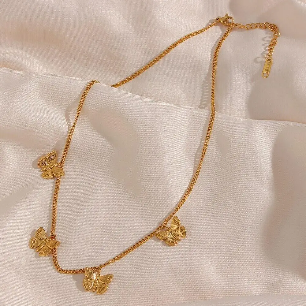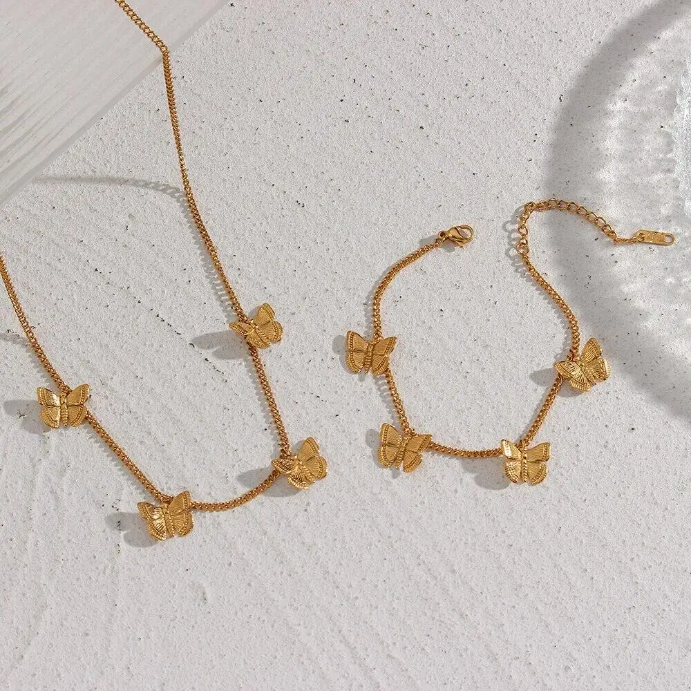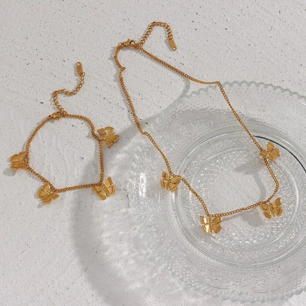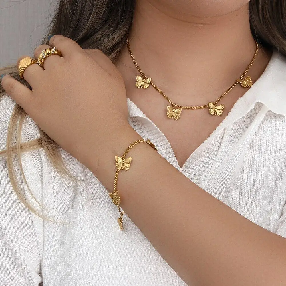 Vintage Style Stainless Steel 18K PVD Plating Gold Charm Bracelet with Butterfly Pendant Gift for Women and Girls
